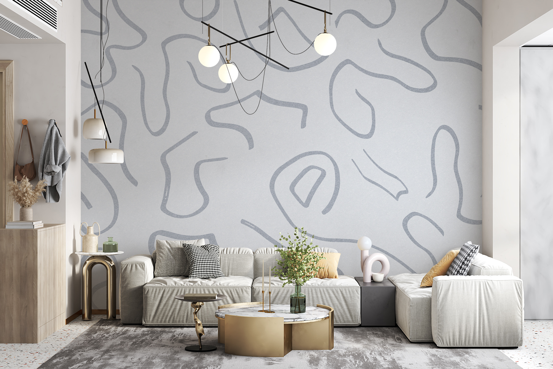 Verändern Sie jeden Raum mit dieser atemberaubenden Fototapete mit einer verspielten Mischung aus abstrakten Linien, die über einen cremeweißen Hintergrund tanzen. Es ist, als hätte man ein modernes Kunstwerk an der Wand – nur ohne den hohen Preis. Stellen Sie sich vor, Sie nippen an Ihrem Morgenkaffee, während Sie sich in der sanften, heiteren Stimmung sonnen, die es ausstrahlt. Perfekt für die Tage, an denen man einen Spritzer Kreativität braucht – es ist wie eine sanfte Erinnerung daran, über den Tellerrand zu schauen. Außerdem ist es eine einfache Möglichkeit, einen Raum aufzuwerten, ohne ihn zu überladen. Lassen Sie sich von diesen Linien inspirieren; wer weiß, wohin Ihre Fantasie führen wird!