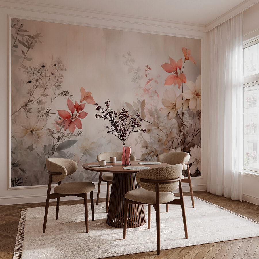 Verwandeln Sie jede Wand in eine heitere Oase mit diesem bezaubernden Wandbild aus Blumen. Stellen Sie sich vor, Sie würden in einen Traum eintauchen, in dem zarte Blüten in sanften Farbtönen tanzen und eine Atmosphäre schaffen, die sowohl beruhigend als auch aufmunternd wirkt. Es ist, als würde man einen Hauch von frischer Luft ins Haus holen – perfekt für eine gemütliche Leseecke oder einen ruhigen Eingangsbereich. Der Aquarelleffekt sorgt für einen fließenden Charme, fast wie eine leichte Brise, die durch einen Garten weht. Vielleicht bleiben Freunde stehen und fragen, ob jemand die Tür zur Natur weit offen gelassen hat. Perfekt für alle, die ein bisschen Blumenflair zu schätzen wissen, ohne sich um die Pflege echter Pflanzen kümmern zu müssen!