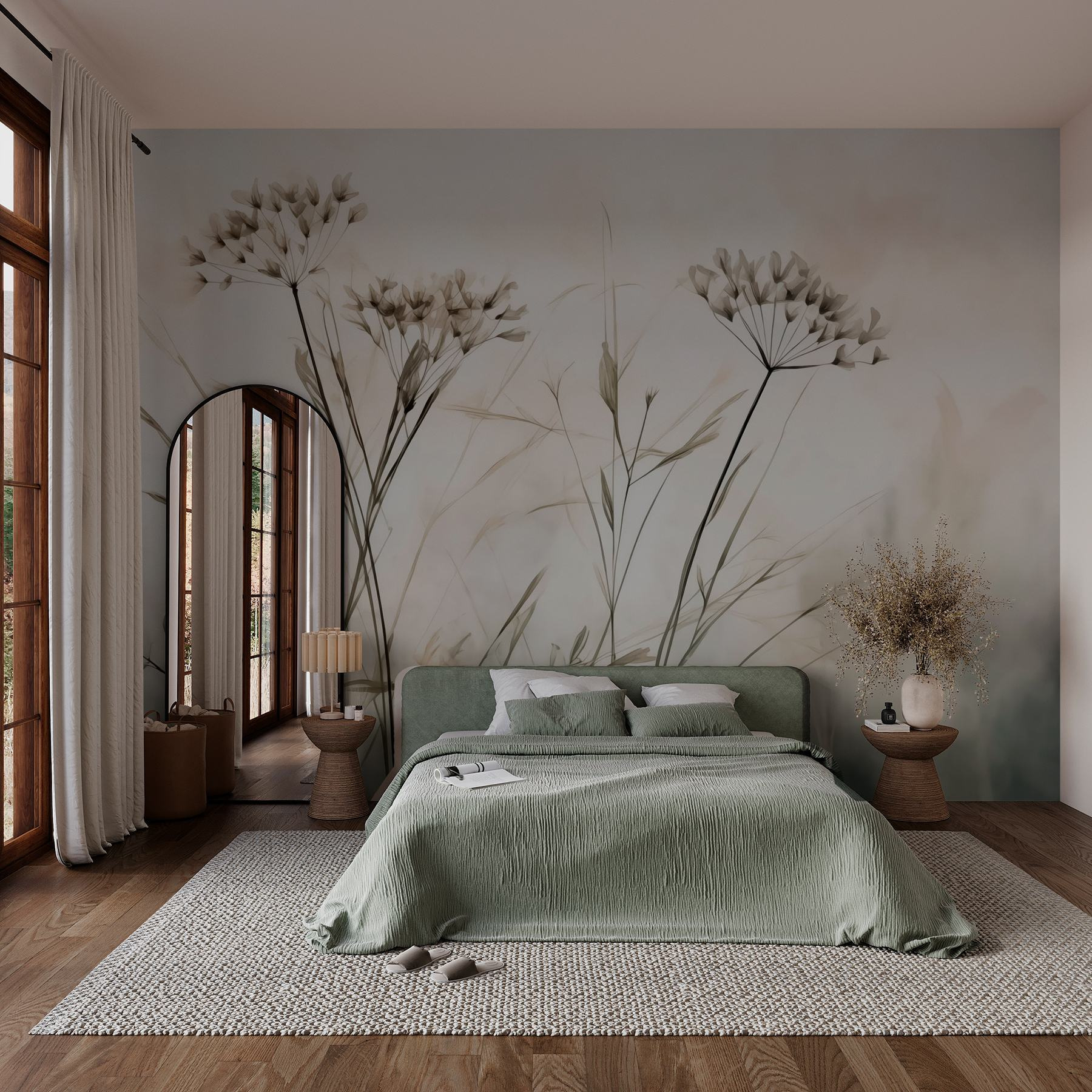 Holen Sie sich mit der Fototapete “Delicate Flowers in Soft Hues” einen Hauch von Natur ins Haus. Dieses heitere Design strahlt Eleganz aus und verbindet zarte Blütenblätter mit sanftem Grün, das wie ein Hauch von frischer Luft wirkt. Stellen Sie sich vor, Sie betreten einen Raum, in dem die Wände zu blühen scheinen und Schmetterlinge herumflattern (okay, vielleicht nur in Ihrer Fantasie). Es ist die perfekte Kulisse für faule Sonntagnachmittage oder inspirierende kreative Momente. Und wer würde sich nicht gerne wie in einem Aquarell fühlen? Es ist, als würde man in einem Garten nisten, nur ohne die Pollen!