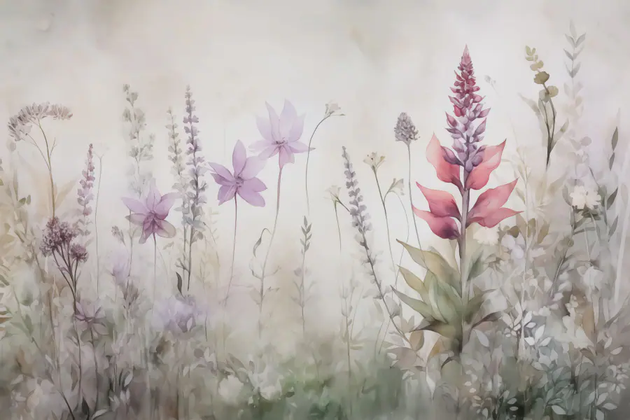 Verwandeln Sie Ihren Raum mit dieser atemberaubenden Fototapete, einem verträumten Gemälde mit tanzenden Blumen auf einem Feld. Stellen Sie sich vor, dass Sie jedes Mal, wenn Sie den Raum betreten, einen ruhigen Garten betreten – ein Hauch von frischer Luft, ganz ohne Pollenallergien! Die sanften Violett- und Grüntöne laden zur Ruhe ein, perfekt für eine gemütliche Leseecke oder ein entspannendes Schlafzimmer. Stellen Sie sich vor, Sie schlürfen Tee, umgeben von einem blühenden Paradies. Es ist, als hätte die Natur geflüstert: “Hey, lasst uns die Dinge beleben!” Mit jedem Blick spüren Sie, wie der Stress dahinschmilzt und sich Gelassenheit einstellt. Holen Sie die Natur ins Haus – warum nicht?