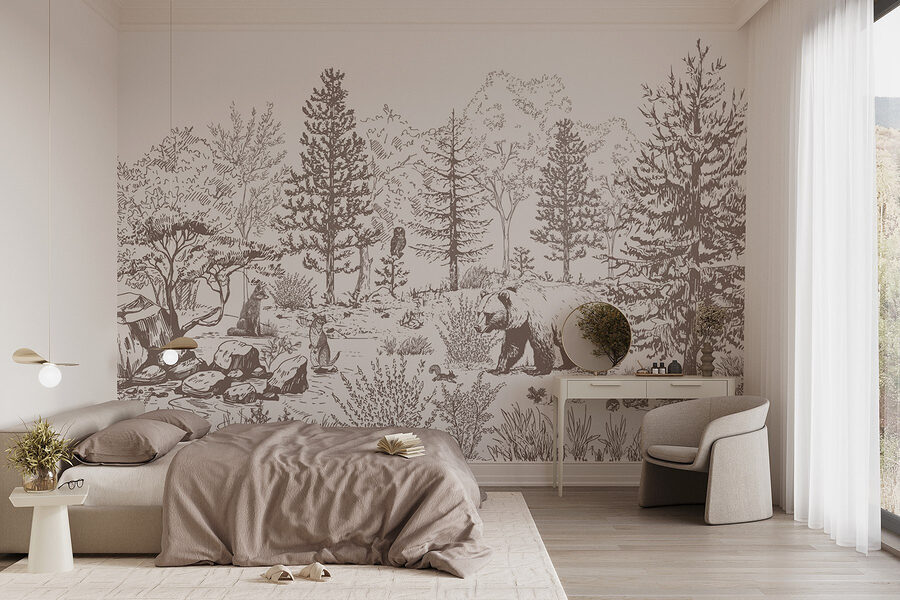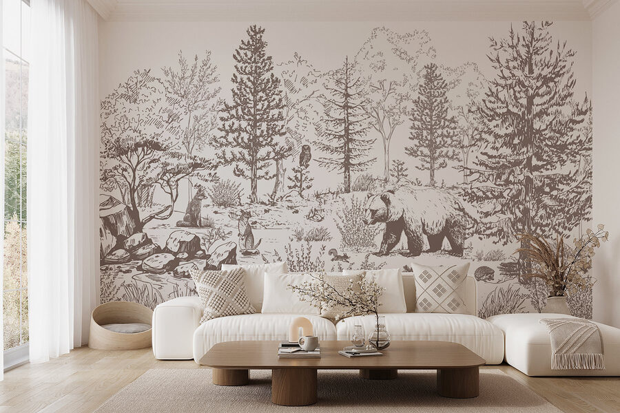 Verwandeln Sie Ihren Raum in einen gemütlichen Rückzugsort im Wald mit der Fototapete “Bear Walking in the Woods”. Stellen Sie sich vor, Sie schlürfen Ihren Morgenkaffee, während dieser majestätische Bär durch einen ruhigen Wald spaziert, mit verspielten Tieren und flüsternden Bäumen. Es ist, als hätten Sie die Natur direkt in Ihrem Wohnzimmer, nur ohne die Moskitos! Diese Fototapete verleiht einen Hauch von Abenteuer und Ruhe und weckt Tagträume von Waldwanderungen und Abenden am Lagerfeuer. Perfekt für Naturliebhaber oder alle, die dem Alltag entfliehen wollen. Warum also nicht den inneren Entdecker in dir wecken? Ihre Wände haben es verdient, ein wenig Magie zu atmen!