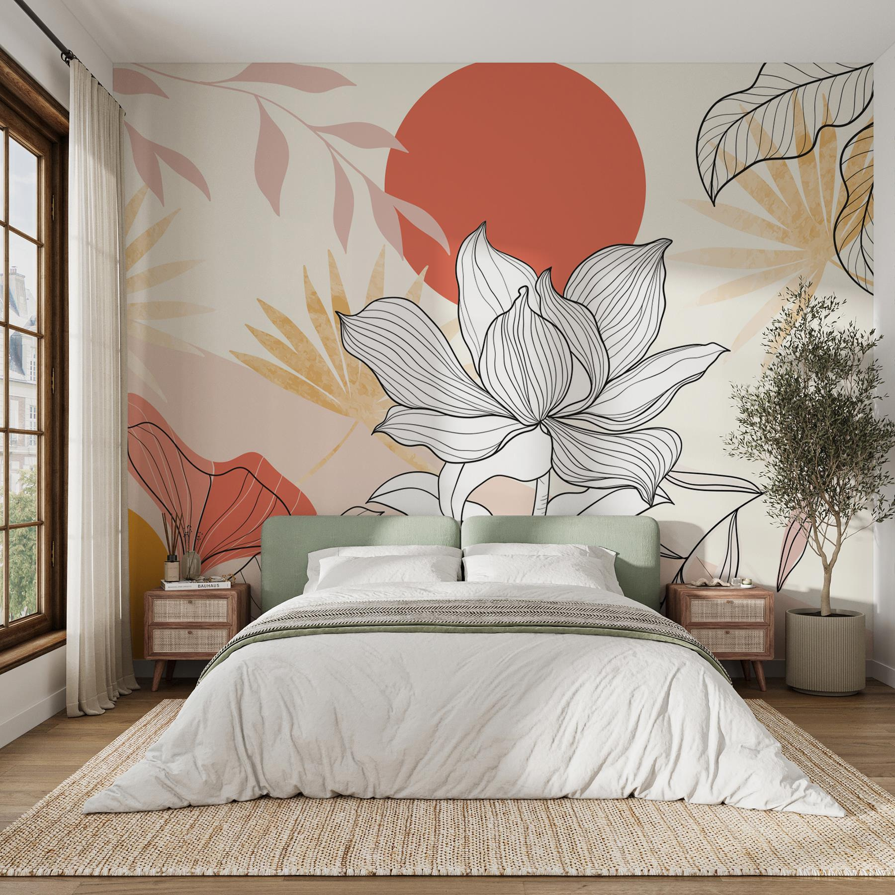 Verschönern Sie Ihre Wände mit dieser wunderschönen Fototapete, auf der Blumen und Blätter unter einer warmen roten Sonne tanzen. Es ist, als würde man sich die Natur ins Haus holen – natürlich ohne Ungeziefer. Stellen Sie sich vor: Sie schlürfen einen Kaffee, während Sie die leuchtenden Farben in sich aufnehmen; es ist wie ein Mini-Urlaub direkt bei Ihnen zu Hause. Die Mischung aus sanften Pastelltönen und auffälligen Rottönen schafft eine gemütliche und doch energiegeladene Atmosphäre. Laden Sie Ihre Freunde zu einem lockeren Plausch ein und beobachten Sie, wie sie beim Bewundern der Kunstwerke fröhlich werden. Perfekt für jeden Raum, der einen Hauch von Persönlichkeit braucht. Wer würde sich nicht eine botanische Flucht wünschen?
