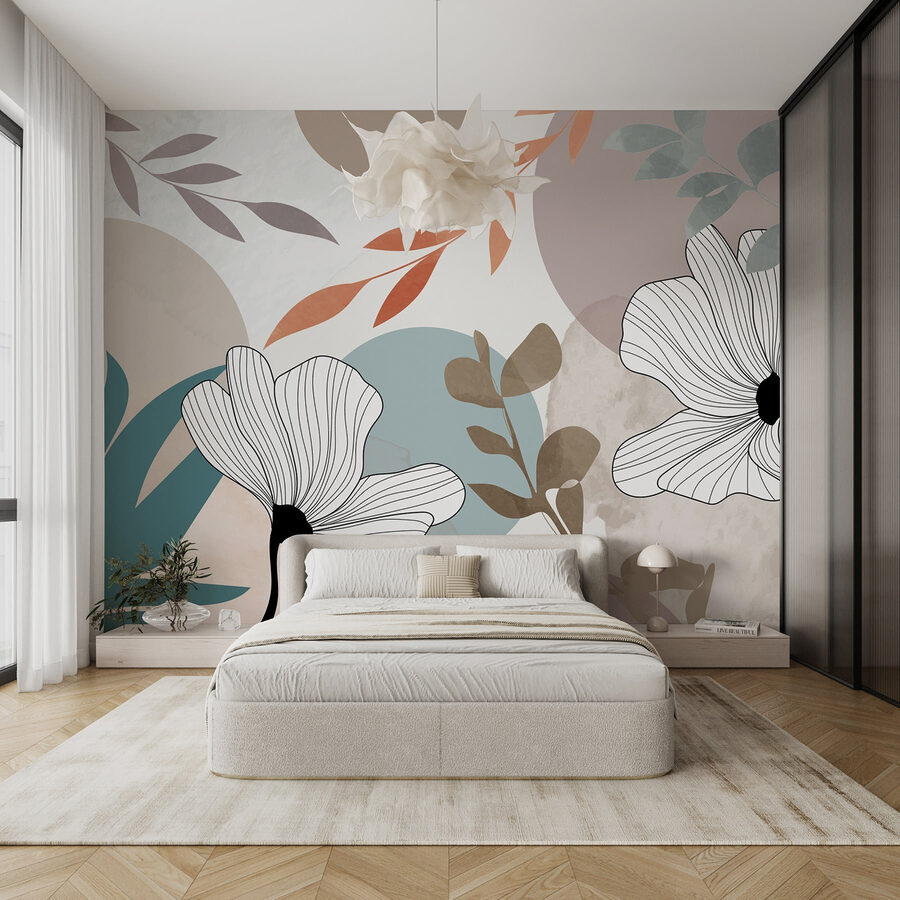 Verwandeln Sie Ihren Raum mit dieser atemberaubenden Fototapete mit zarten weißen Blumen, knackigen braunen Blättern und verspielten blauen Kreisen. Es ist, als würde man sich ein Stück Natur ins Haus holen, ohne das ganze Gießkannen-Drama. Stellen Sie sich vor, Sie wachen mit diesem lebendigen Design auf, in dem sanfte Aquarellfarben miteinander tanzen und eine beruhigende Atmosphäre schaffen – perfekt, um den Morgenkaffee zu genießen oder ein kleines Nachmittagsschläfchen zu halten. Es hat eine frische, künstlerische Ausstrahlung, die jeden Raum in eine gemütliche Galerie verwandeln kann. Mit dieser Fototapete können Sie einer langweiligen Wand schnell Leben einhauchen und Freude verbreiten – wer würde das nicht wollen?