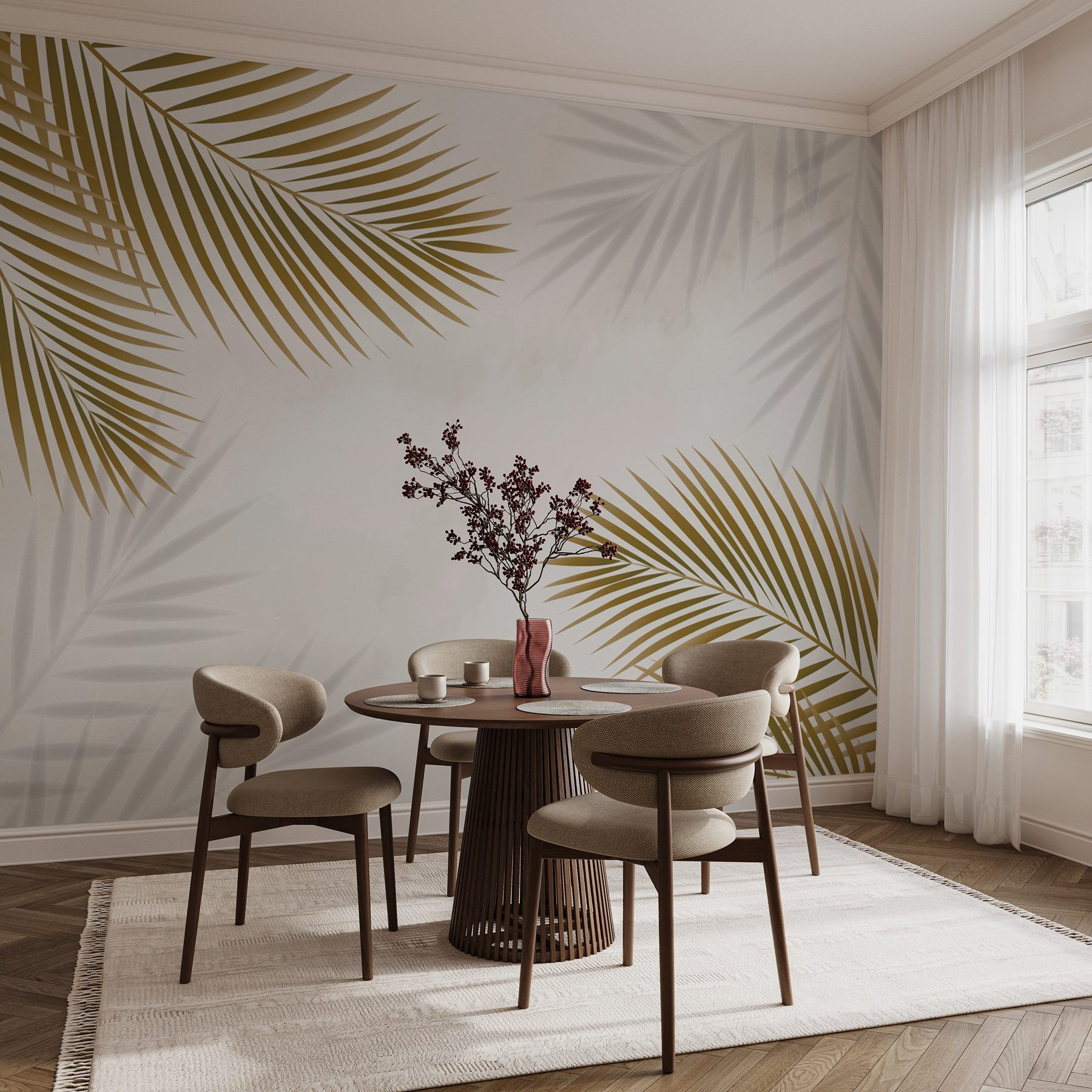Verwandeln Sie Ihren Raum in einen tropischen Zufluchtsort mit dieser atemberaubenden Fototapete, die eine Gruppe von Blättern zeigt, die über einen weichen weißen Hintergrund tanzen. Stellen Sie sich vor, Sie betreten Ihr Zimmer und werden vom sanften Schwingen der Palmwedel begrüßt, als wären Sie direkt in eine heitere Oase getreten. Es ist dezent und doch auffallend – perfekt, um einen Hauch von Natur in Ihr Zimmer zu bringen, ohne dass Sie Pflanzen gießen müssen! Diese Fototapete sorgt für eine erfrischende Atmosphäre, ob in einem gemütlichen Wohnzimmer oder einem ruhigen Schlafzimmer. Ihre Freunde könnten Ihr Zuhause mit einem schicken Inselparadies verwechseln – das Schlürfen von Kokosnusswasser ist völlig freiwillig, aber sehr erwünscht!