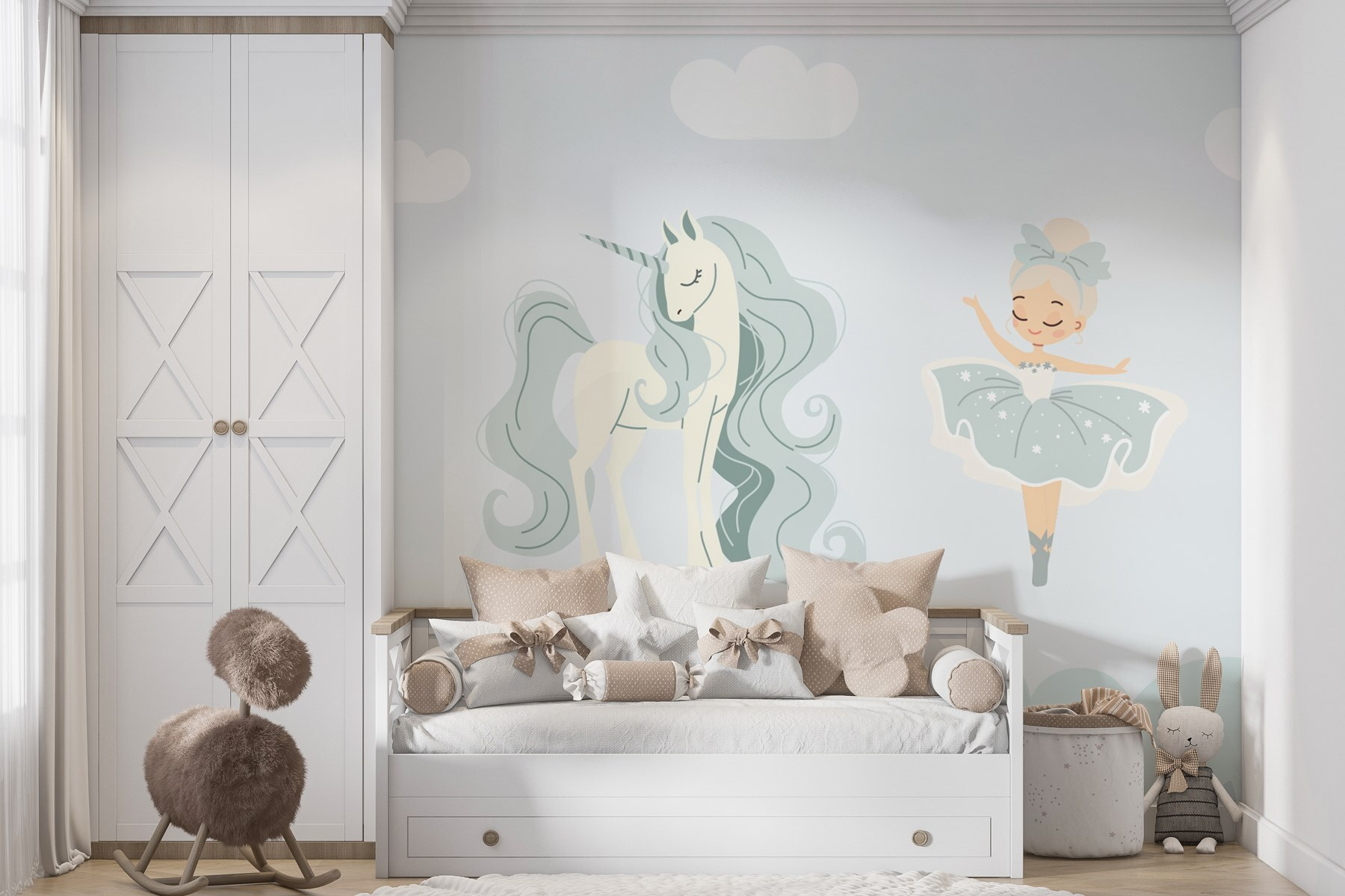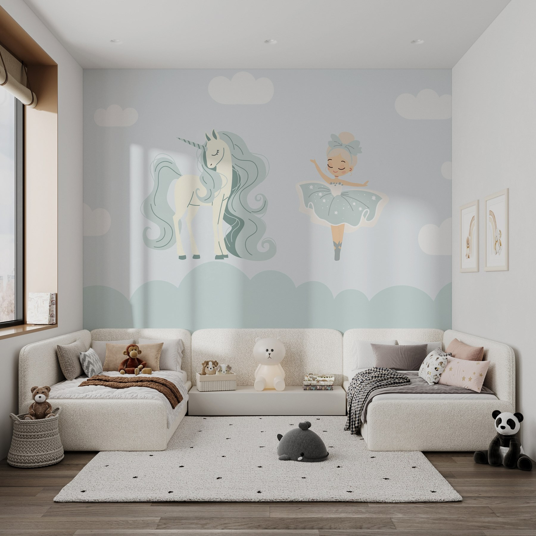 Stellen Sie sich vor, Sie betreten einen Raum, der sich wie ein wunderlicher Tagtraum anfühlt – dieses “Fototapeten Cartoon of a Girl and a Unicorn” macht genau das! Mit seinen sanften Farben und süßen Figuren verwandelt es jeden Raum in ein verspieltes Paradies. Stellen Sie sich ein neugieriges kleines Mädchen vor, das herumwirbelt und so tut, als würde es mit seinem Einhornfreund tanzen. Die entzückenden Details werden zum Kichern anregen und die Fantasie beflügeln. Und wer liebt nicht eine magische Flucht aus dem Alltag? Es ist, als ob man sich einen Hauch von Feenstaub ins Haus holt – bezaubernd, nicht wahr? Perfekt zur Verschönerung von Kinderzimmern oder Spielzimmern – wenn doch nur die Zimmer der Erwachsenen auch Einhörner haben könnten!