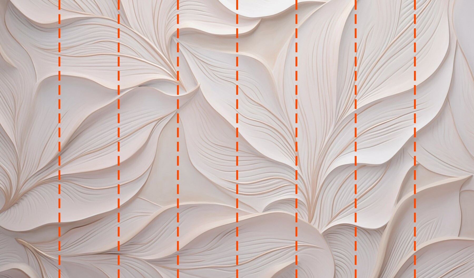 Ihre Tapete wird nach den von Ihnen während des Bestellvorgangs angegebenen Maßen angefertigt. Die Leinwand wird in praktische Abschnitte von jeweils bis zu 50 cm Breite unterteilt.