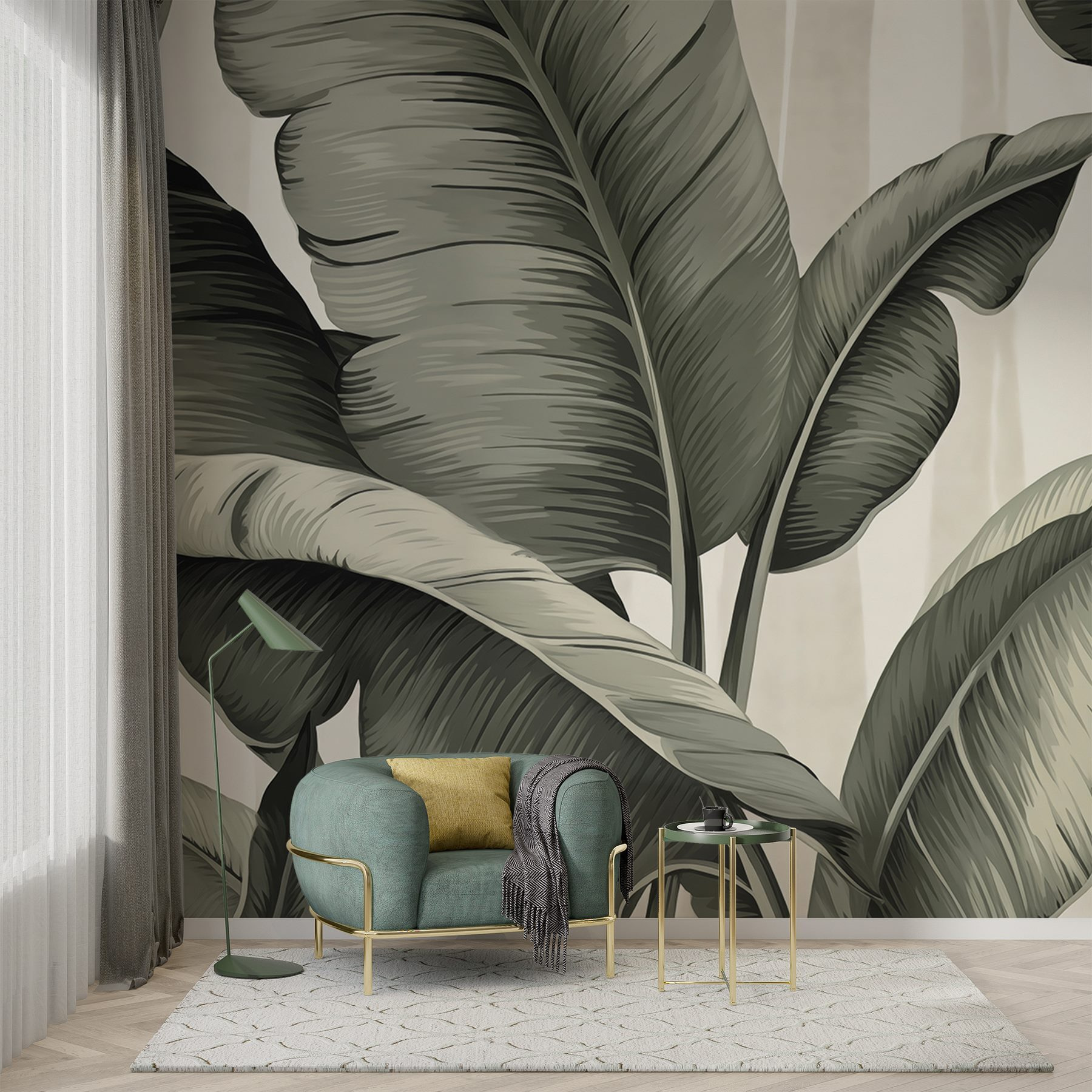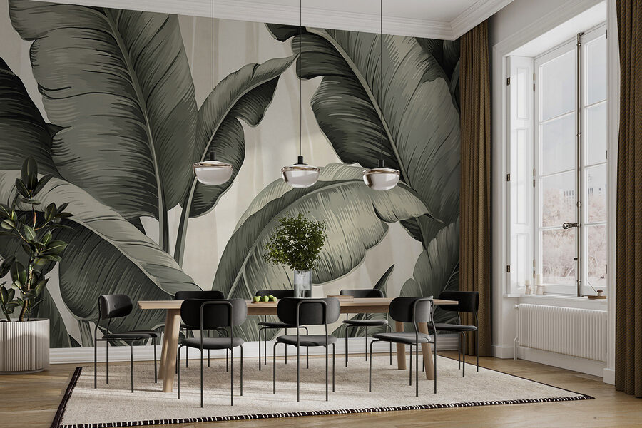 Verwandeln Sie jeden Raum in ein tropisches Paradies mit „Nature’s Art in Graceful Foliage“. Diese Wandtapete hängt nicht einfach nur da, sondern flüstert Geschichten von lauen Brisen und üppigem Grün. Stellen Sie sich vor, Sie nippen an einem kühlen Getränk, umgeben von sanften Blattmustern, die über Ihre Wände tanzen. Die monochromen Grüntöne schaffen eine beruhigende Atmosphäre und laden Sie zum Entspannen ein, als würden Sie an einem sonnigen Nachmittag unter einer Palme liegen. Es ist perfekt, um einen langweiligen Raum aufzupeppen oder Ihrer Einrichtung einen Hauch von Naturcharme zu verleihen. Wer hätte gedacht, dass Laub so schick sein kann?