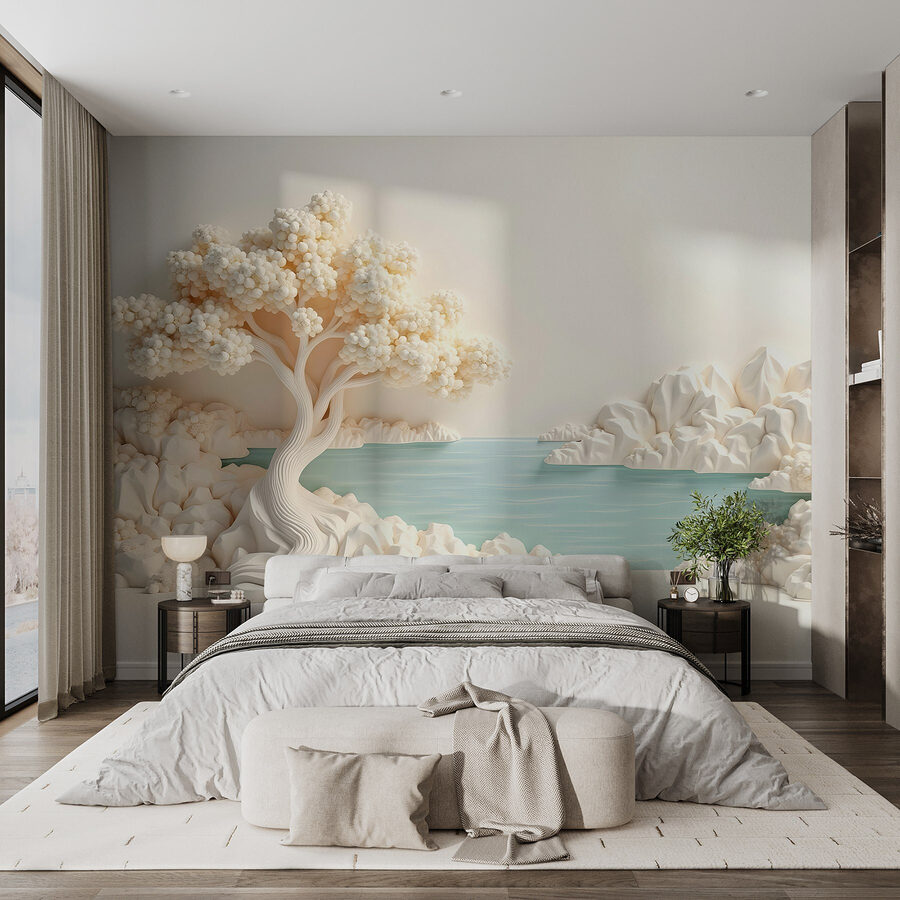 Verwandeln Sie Ihren Raum mit dem bezaubernden Wandbild “Weißer Baum und Wasser”. Diese atemberaubende Fototapete bringt eine heitere Stimmung in Ihr Zuhause. Sie zeigt einen wunderschön gestalteten Baum, der die Geheimnisse der Natur zu flüstern scheint. Stellen Sie sich vor, Sie nippen an Ihrem Morgenkaffee, während Sie auf das ruhige Wasser blicken – es ist wie eine kleine Flucht aus der Hektik des Alltags.