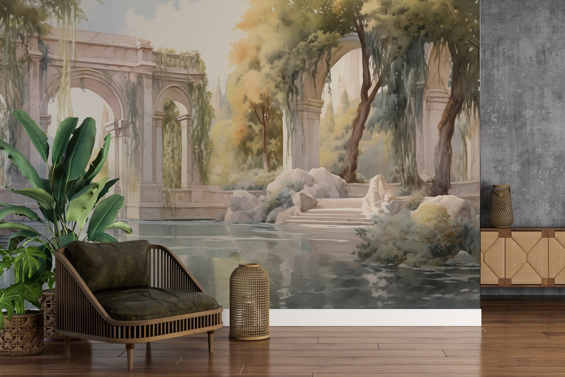 Step into a dreamy escape with this enchanting wall mural, “Water with Trees and Arches.” Picture this: lush greenery flanking tranquil waters beneath timeless arches, whispering secrets of nature and calm. It’s like bringing a serene garden into your living room—who wouldn’t want that? Not just a pretty face, this mural adds depth and invites peaceful vibes, making any space feel a little more like a cozy retreat. Imagine sipping tea while gazing at it, lost in thought, with just a hint of nature’s magic right at home. Perfect for those who crave a touch of whimsy and warmth!