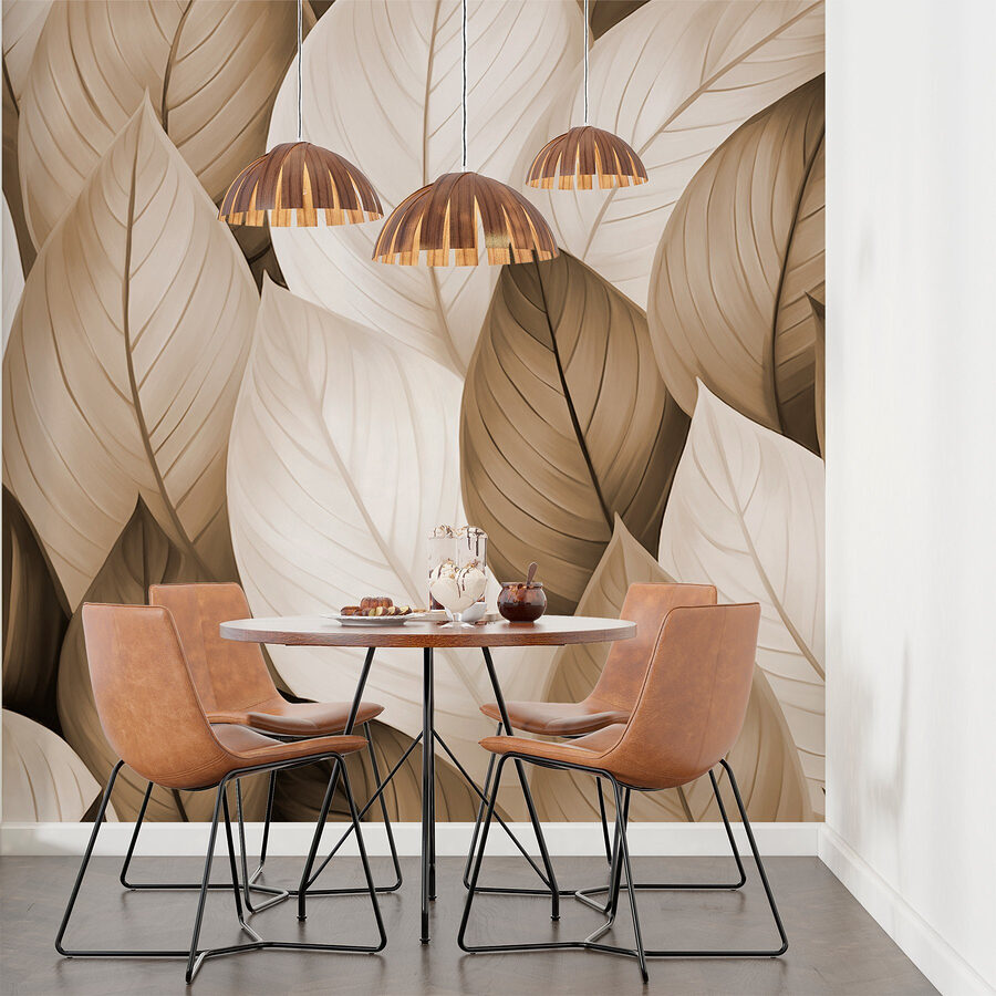 Verwandeln Sie jeden Raum in eine Oase der Ruhe mit dieser atemberaubenden Wandtapete, die ein Muster aus braunen und weißen Blättern zeigt. Stellen Sie sich vor, Sie betreten den Raum und werden von der ruhigen Umarmung der Natur umhüllt. Die sanften Farbtöne schaffen eine warme Atmosphäre, perfekt für gemütliche Abende oder helle, sonnige Morgenstunden. Es ist, als hätten Sie ein Stück Natur direkt in Ihrem Zuhause, nur ohne Insekten! Stellen Sie sich ein Treffen mit Freunden vor, bei dem sich alle entspannt und glücklich fühlen, einfach weil die Wände wie ein friedlicher Wald wirken. Perfekt für ein Wohnzimmer oder sogar ein ruhiges Schlafzimmer – nur wenige Schritte entfernt von einem täglichen Kurzurlaub!