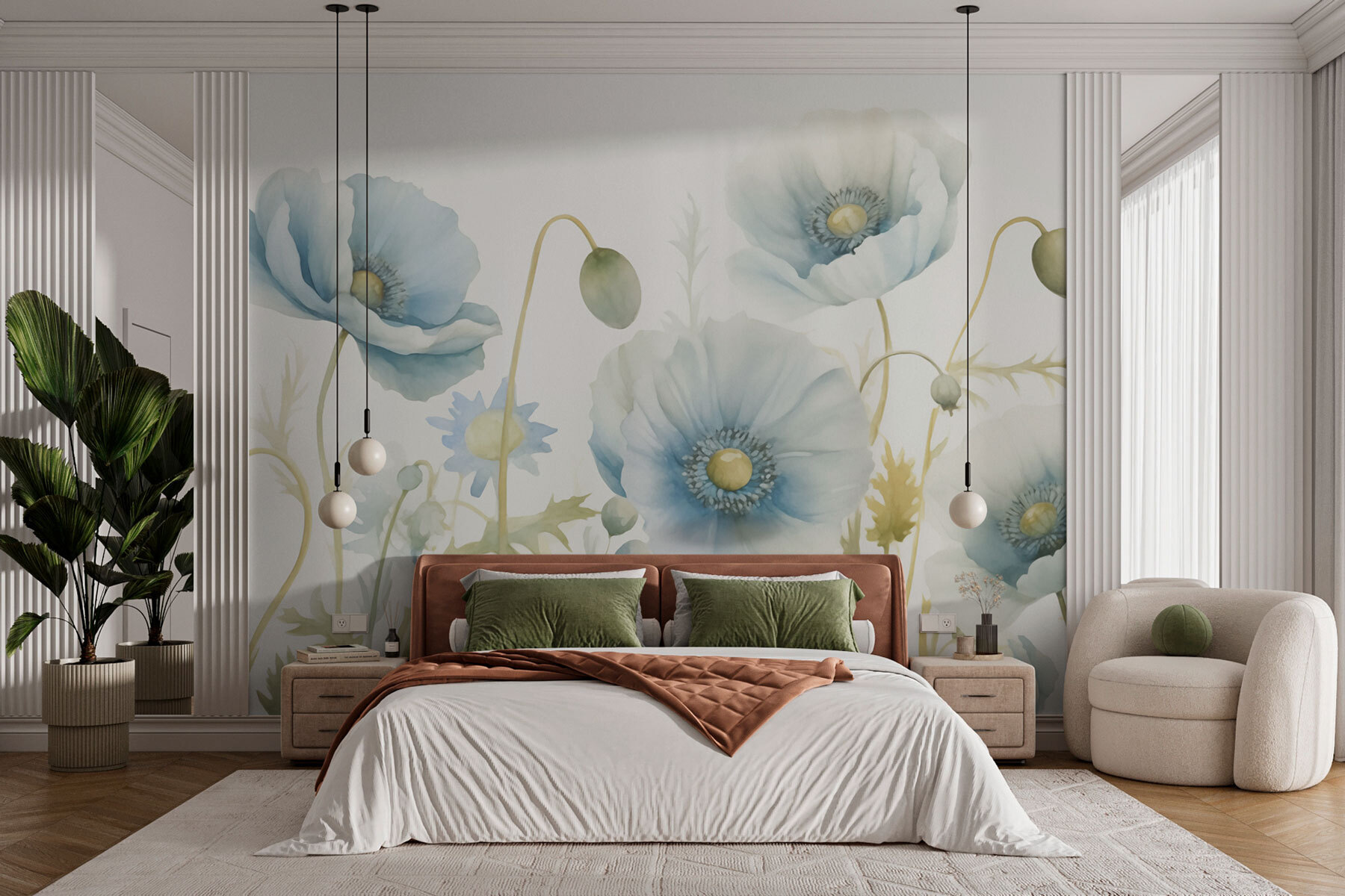 Transform a dull wall into a peaceful oasis with the “Delicate Blooms in Soft Pastel Hues” mural. Imagine walking into a room where gentle watercolor flowers dance softly on the wall, their serene colors whispering sweet nothings to your soul.