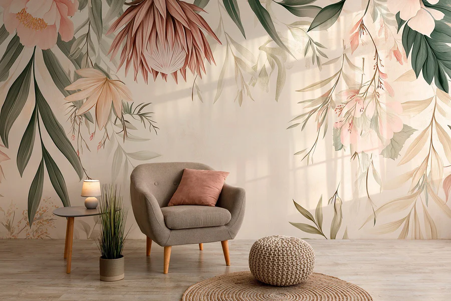 Transform any space into a serene retreat with this enchanting wall mural! Aptly named “Floral Border with Leaves and Flowers,” it’s like bringing a dreamy garden indoors—without the need for a green thumb. The soft blush and earthy greens create a refreshing vibe, perfect for waking up a boring wall. Imagine sipping coffee in your cozy nook, surrounded by these blooms, feeling instantly uplifted. Plus, the soothing colors can calm even the most chaotic of days. It’s not just decor; it’s a gentle reminder that beauty is all around. A splash of nature? Yes, please!