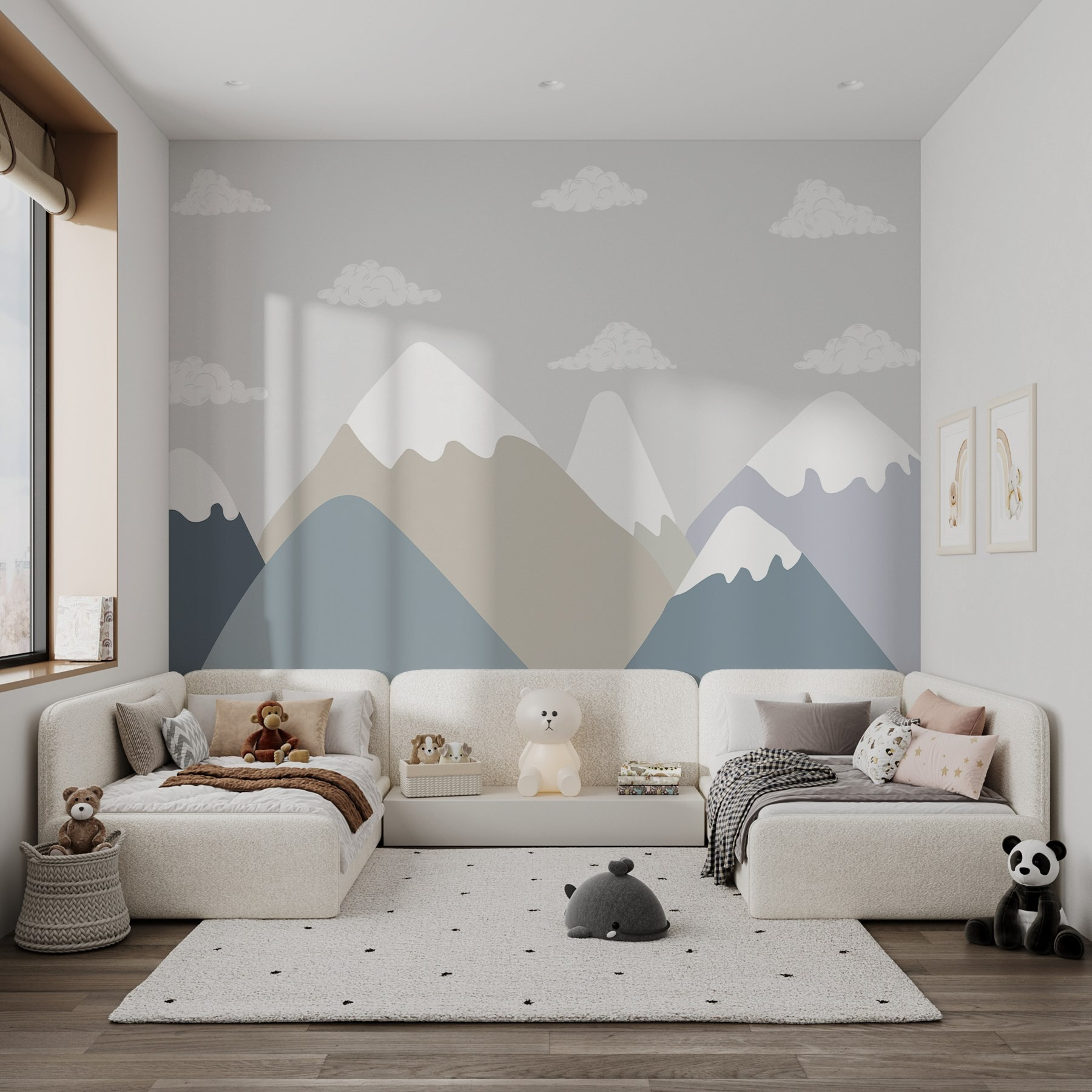 Verwandeln Sie Ihren Raum mit diesem bezaubernden Wandbild, das friedliche Gebirgszüge und vorbeiziehende flauschige Wolken zeigt. Stellen Sie sich vor, Sie betreten einen Raum, der sich wie ein frischer Wind anfühlt – eine kühle Flucht aus dem Alltag. Die sanften Blau- und Beigetöne laden zur Gelassenheit ein und machen es perfekt für eine gemütliche Leseecke oder ein ruhiges Schlafzimmer. Stellen Sie sich vor, Sie machen es sich mit einem guten Buch gemütlich und verlieren sich in der Schönheit der Natur, ohne das Haus zu verlassen. Es ist, als hätte man sein eigenes Stückchen Natur, nur ohne die Mücken. Zeit, diese Wände sprechen zu lassen!