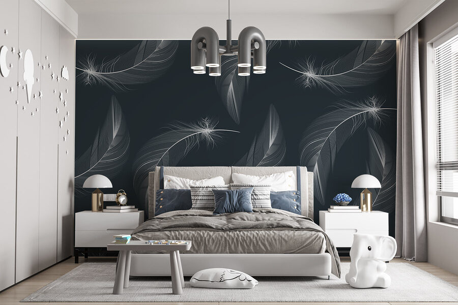 Verwandeln Sie Ihren Raum mit diesem ruhigen „Wandbildmuster aus weißen Federn“. Stellen Sie sich vor, Sie betreten Ihr Zimmer und fühlen sich sofort beruhigt durch die sanfte, subtile Eleganz dieser Federmotive, die anmutig über einen satten, dunklen Hintergrund schweben. Es ist, als hätte man ein Stück Natur im Haus, das eine friedliche Atmosphäre schafft, in der man sich mit einem guten Buch zurückziehen oder bei einer Tasse Tee träumen möchte. Diese Tapete eignet sich perfekt für Schlafzimmer oder gemütliche Ecken und verleiht ihnen einen Hauch von verspieltem Charme. Außerdem ist sie ein schöner Gesprächsaufhänger – denn wer liebt nicht ein bisschen Feder-Spaß? Verleihen Sie Ihrer Einrichtung eine zusätzliche Note von Gemütlichkeit und lassen Sie sich von diesen sanften Mustern verzaubern!