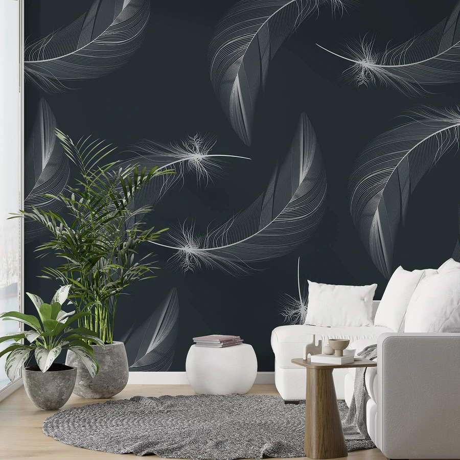 Transform your space with this serene “Wall Murals Pattern of White Feathers.” Imagine stepping into your room and feeling instantly calmed by the soft, subtle elegance of these feather motifs floating gracefully across a rich, dark background. It’s like having a whisper of nature indoors, inviting peaceful vibes that make you want to curl up with a good book or sip tea while daydreaming. Perfect for bedrooms or cozy nooks, this mural brings a touch of whimsical charm. Plus, it’s a lovely conversation starter—after all, who doesn’t love a bit of feather fun? Add a layer of comfort to your decor, and let those gentle patterns carry you away!