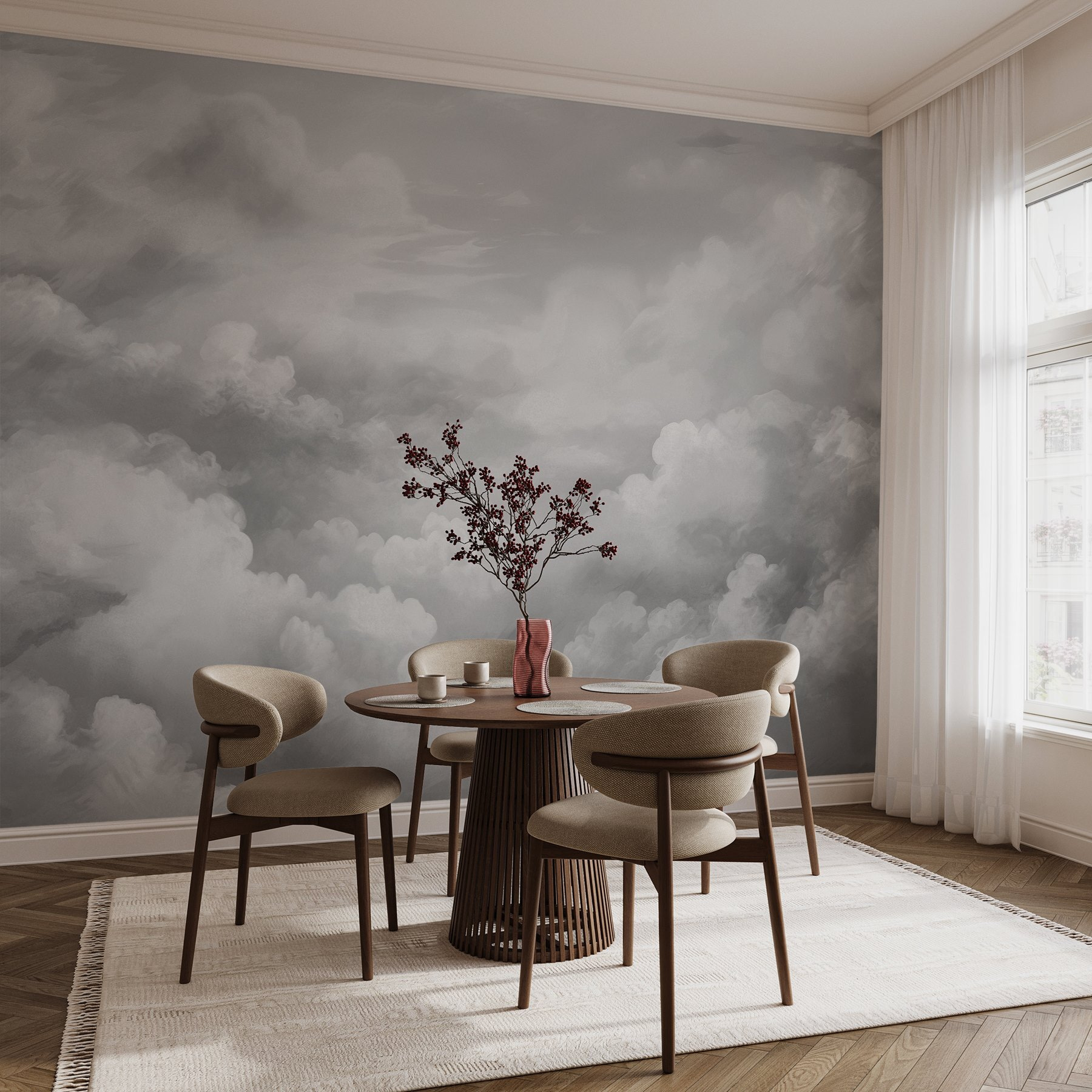 Die subtilen Farbtöne und verträumten Designs verleihen dem Wandbild eine schicke, zeitgemäße Ausstrahlung und machen es zu einem fantastischen Blickfang. Ihre Freunde werden bestimmt sagen: „Wow, wo hast du das her?” Das ist doch mal ein toller Gesprächsaufhänger! Außerdem passt es perfekt zum Thema Naturliebhaber, ohne dabei aufdringlich zu wirken. Werten Sie Ihre Einrichtung auf, atmen Sie tief durch und lassen Sie diese Wolken ein wenig Ruhe in Ihren Alltag bringen.