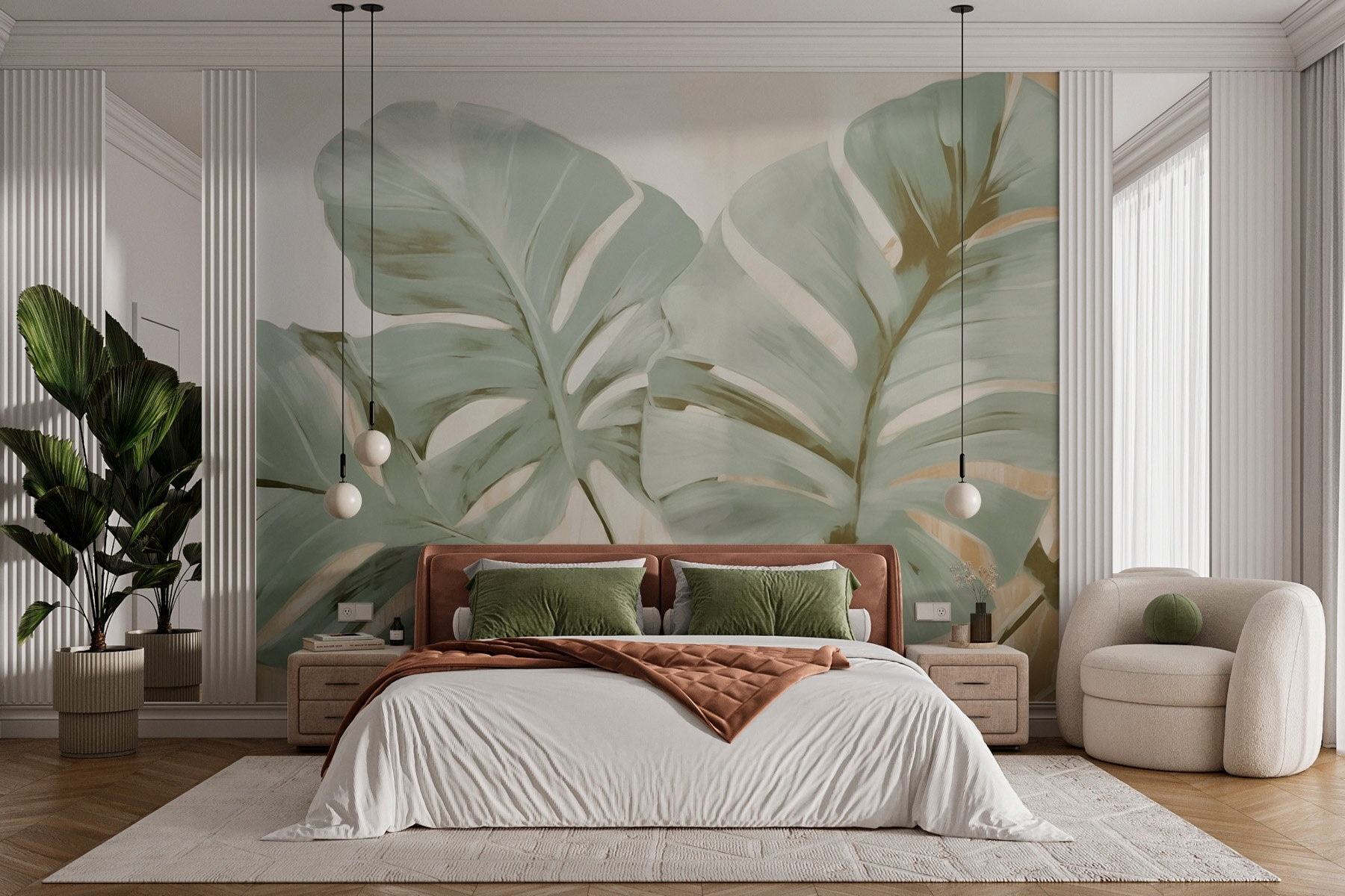 Transform any space with this stunning wall mural featuring elegant leaves that seem to dance across the wall. Imagine stepping into your room and feeling like you’ve just wandered into a tropical oasis. The soft greens and warm backgrounds invite a sense of calm—perfect for unwinding after a long day. It’s like having a piece of nature right at home, minus the pesky bugs! Plus, whether it’s your living room or office, this mural adds just the right vibe—there’s something undeniably fresh and uplifting about foliage. Your friends might even think you took a mini vacation!