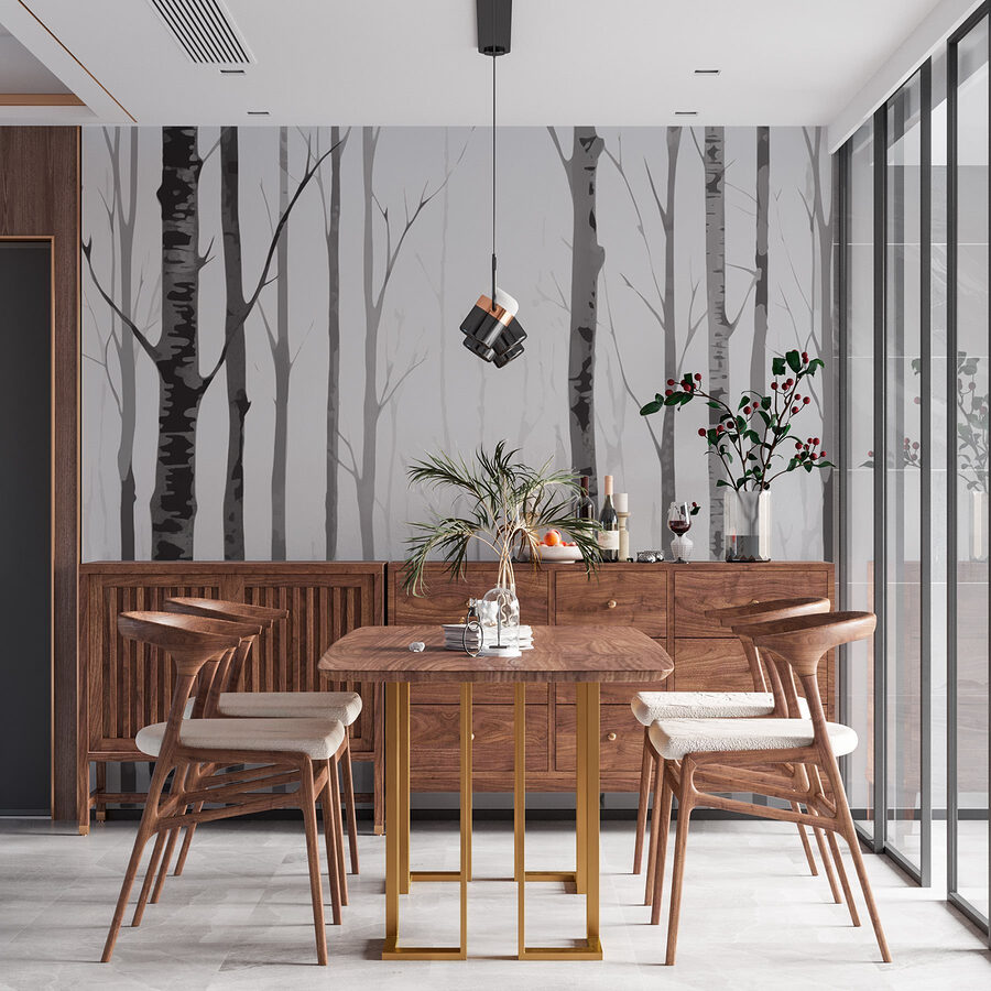 Verwandeln Sie jeden Raum mit dieser atemberaubenden Wandtapete mit Bäumen in einem ruhigen Wald. Es ist nicht nur eine Wandtapete, sondern wie ein flüsternder Hain, den Sie direkt in Ihr Wohnzimmer einladen. Stellen Sie sich vor, Sie trinken Ihren Morgenkaffee, während Sie die sanften Silhouetten der Bäume in eine gemütliche Umarmung hüllen. Die gedämpften Farbtöne schaffen eine friedliche Atmosphäre, perfekt zum Entspannen nach einem langen Tag. Ideal für alle, die sich nach einer Verbindung zur Natur sehnen, ohne lästige Insekten oder Regenwetter. Sie werden das Gefühl haben, Ihr ganz eigenes Stück Natur zu haben – Camping im Haus, aber viel bequemer!