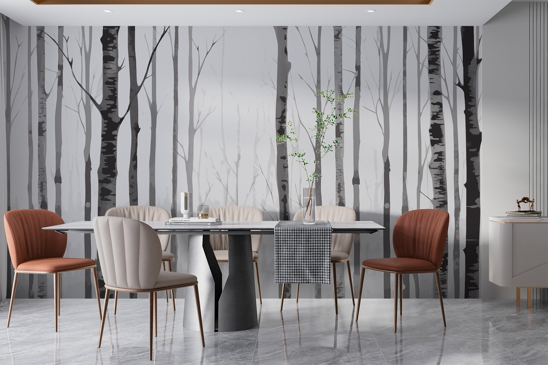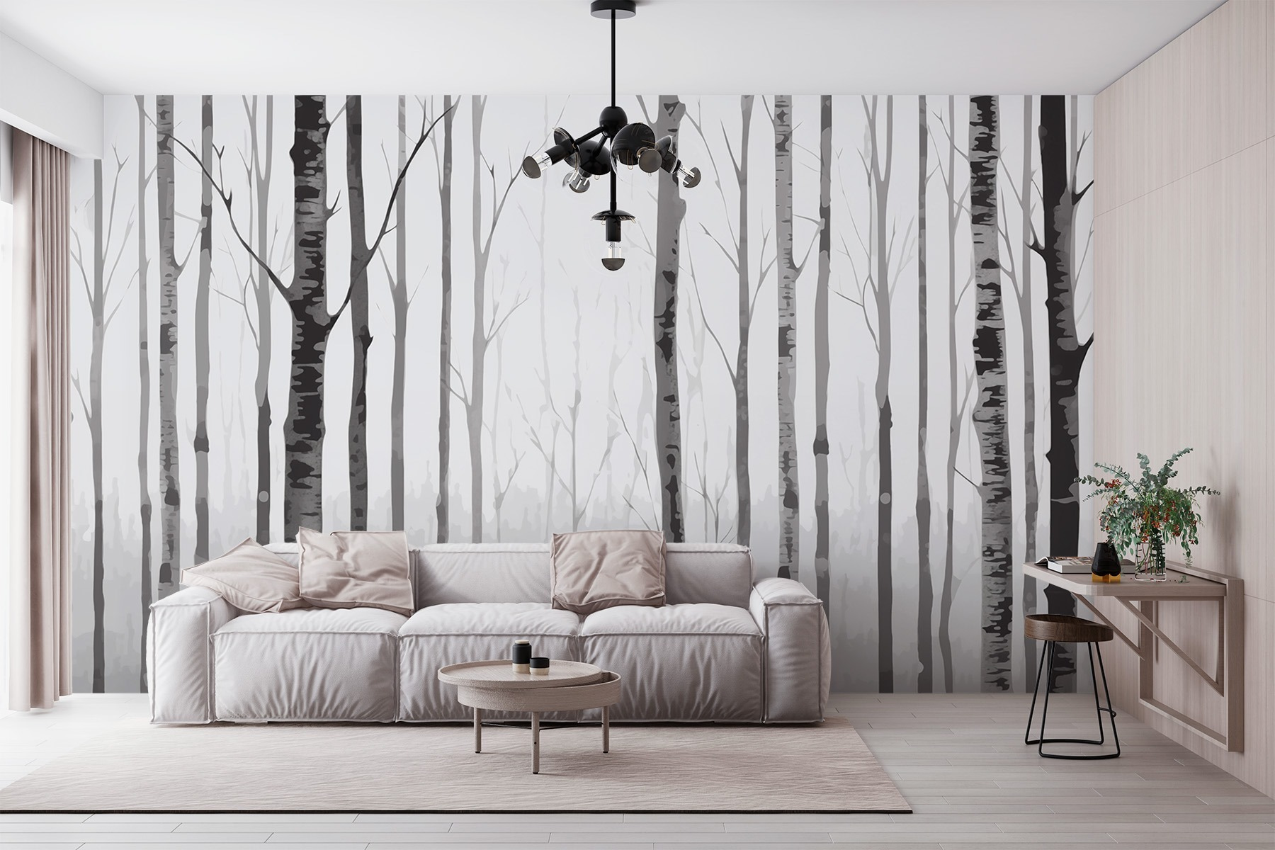 Verwandeln Sie jeden Raum mit dieser atemberaubenden Wandtapete mit Bäumen in einem ruhigen Wald. Es ist nicht nur eine Wandtapete, sondern wie ein flüsternder Hain, den Sie direkt in Ihr Wohnzimmer einladen. Stellen Sie sich vor, Sie trinken Ihren Morgenkaffee, während Sie die sanften Silhouetten der Bäume in eine gemütliche Umarmung hüllen. Die gedämpften Farbtöne schaffen eine friedliche Atmosphäre, perfekt zum Entspannen nach einem langen Tag. Ideal für alle, die sich nach einer Verbindung zur Natur sehnen, ohne lästige Insekten oder Regenwetter. Sie werden das Gefühl haben, Ihr ganz eigenes Stück Natur zu haben – Camping im Haus, aber viel bequemer!