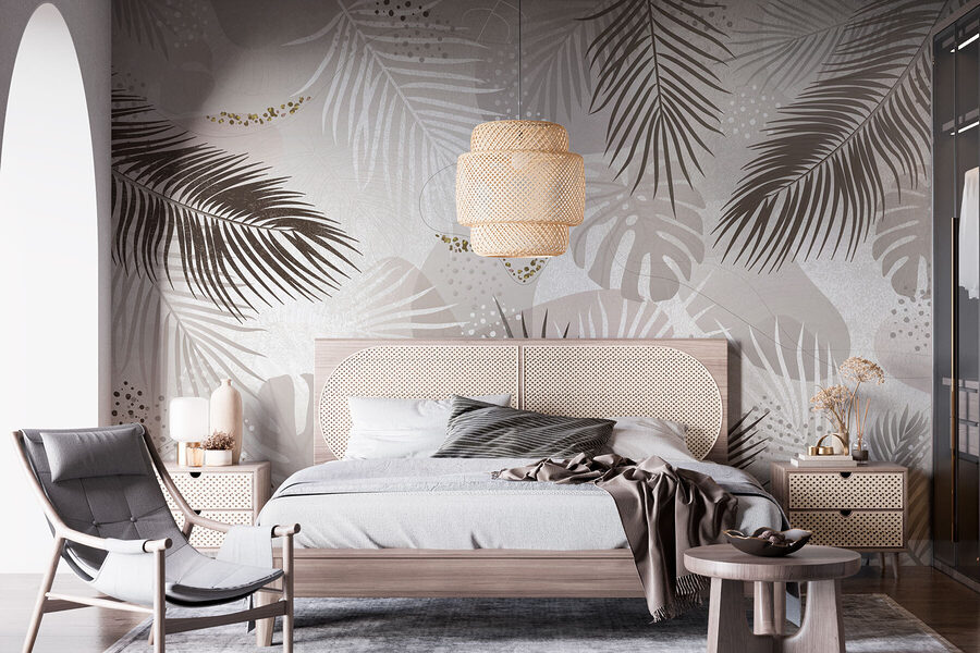 Verwandeln Sie Ihren Raum in eine tropische Oase mit diesem Wandbild, das elegantes Laub in neutralen Tönen zeigt. Stellen Sie sich vor, dass Sie jedes Mal, wenn Sie den Raum betreten, in eine heitere Welt eintauchen, in der sanfte Grüntöne und erdige Brauntöne eine beruhigende Kulisse bilden. Dieses Design sieht nicht nur gut aus, es weckt auch Gefühle der Ruhe in der Natur und erzählt Geschichten von sonnenbeschienenen Dschungeln und luftigen Nachmittagen. Stellen Sie sich vor, wie Sie Freunde mit einem Drink in der Hand empfangen, während sie die üppige Landschaft bewundern und sich vielleicht sogar in ein Gespräch über den letzten Urlaub im Paradies verlieren. Diese Fototapete bringt frischen Wind in jeden Raum und lässt ihn lebendig und mühelos schick erscheinen.