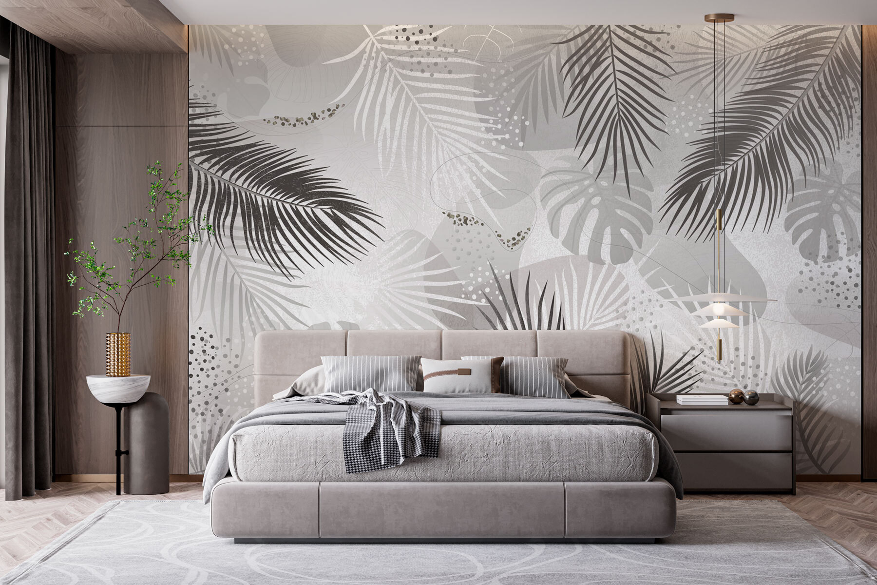 Verwandeln Sie jeden Raum mit dieser atemberaubenden Wandtapete, die einen schicken grau-weißen Hintergrund mit eleganten Blättern ziert. Es ist, als würden Sie einen Hauch von Tropen direkt in Ihr Zuhause bringen, nur ohne die Feuchtigkeit! Stellen Sie sich vor, Sie betreten Ihren Wohnraum und spüren, wie die Ruhe der Natur Sie umgibt. Das verspielte Zusammenspiel der Farbtöne kann echte Stilneid hervorrufen, besonders bei Zusammenkünften – alle werden Sie fragen, wo Sie diese Tapete gefunden haben. Diese Tapete dient nicht nur der Dekoration, sie schafft eine Atmosphäre und verwandelt langweilige Wände in ein Statement. Perfekt für alle, die einen Hauch von modernem Flair hinzufügen möchten, ohne dabei auf Ruhe und Raffinesse zu verzichten. Wer hätte gedacht, dass eine Wand so einladend sein kann?