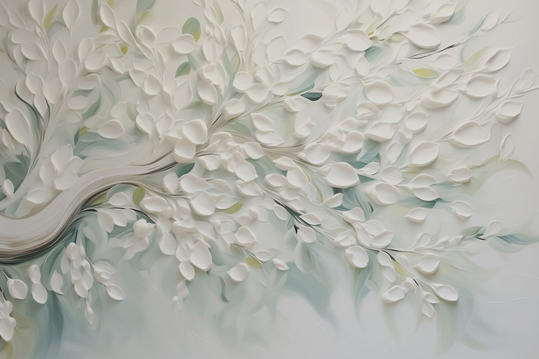 Verwandeln Sie Ihren Raum mit dieser atemberaubenden Wandtapete, die einen ruhigen weißen Baum mit zarten Blättern zeigt. Sie ist wie ein Hauch frischer Luft für Ihre Wände! Stellen Sie sich vor: Sie schlendern in Ihr Wohnzimmer und schon umgibt Sie die beruhigende Atmosphäre der Natur, sodass sich jede Tasse Kaffee wie ein kleiner Ausflug anfühlt. Die sanften Farben und schönen Texturen vermitteln ein Gefühl der Ruhe, sodass Sie vielleicht innehalten, um alles in sich aufzunehmen. Diese Tapete eignet sich perfekt für gemütliche Ecken oder als dramatisches Statement-Stück und bringt einen Hauch von Eleganz und die Schönheit der Natur direkt in Ihr Zuhause. Wer hätte gedacht, dass eine Wand Ihnen so ein gutes Gefühl geben kann?