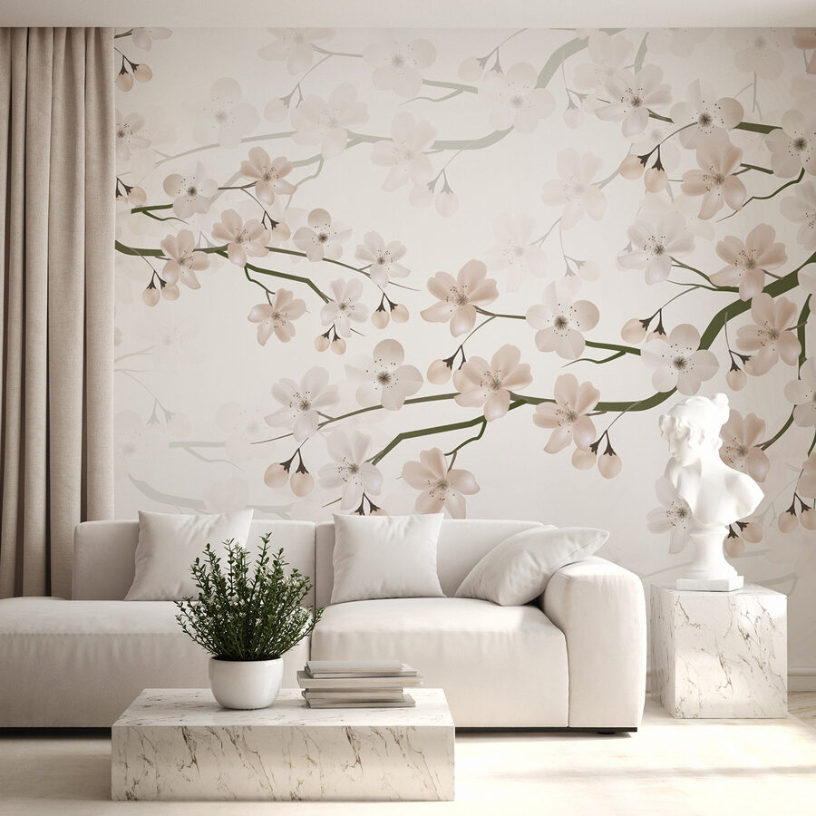 Stellen Sie sich vor, Sie betreten einen Raum, der sich wie ein ruhiger Garten in voller Blüte anfühlt – genau das vermittelt „Wall Murals White Flowers on a Branch”. Mit seinen zarten Blüten und sanften Farben hellt dieses Wandbild mühelos jeden Raum auf und verwandelt das Gewöhnliche in etwas Außergewöhnliches. Es ist, als würden die Blumen Ihren Wänden süße Nichtigkeiten zuflüstern.