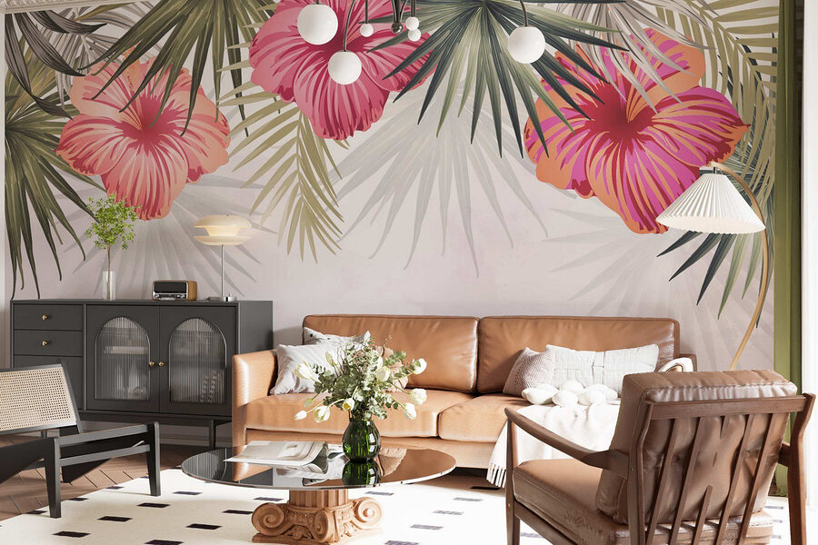 Verwandeln Sie jeden Raum in ein tropisches Paradies mit dieser atemberaubenden Wandtapete aus rosa Blumen, die sich mit üppigen grünen Blättern vermischen. Es fühlt sich an wie ein kleines Stück Natur direkt in Ihrem Zuhause, perfekt, um einen tristen Raum aufzuhellen. Stellen Sie sich vor, Sie trinken Ihren Morgenkaffee, umgeben von diesen leuchtenden Blüten – das könnte Sie sogar zum Träumen inspirieren! Die Farben heben sich von einem sanften Hintergrund ab und machen das Bild zu einem Blickfang, ohne aufdringlich zu wirken. Pflanzen müssen zwar gegossen werden, aber diese Schönheit ist pflegeleicht! Perfekt für alle, die sich ein Stück Natur ins Haus holen möchten, ohne sich um die Pflege von Pflanzen kümmern zu müssen. Also los, lassen Sie Ihre Wände erblühen!