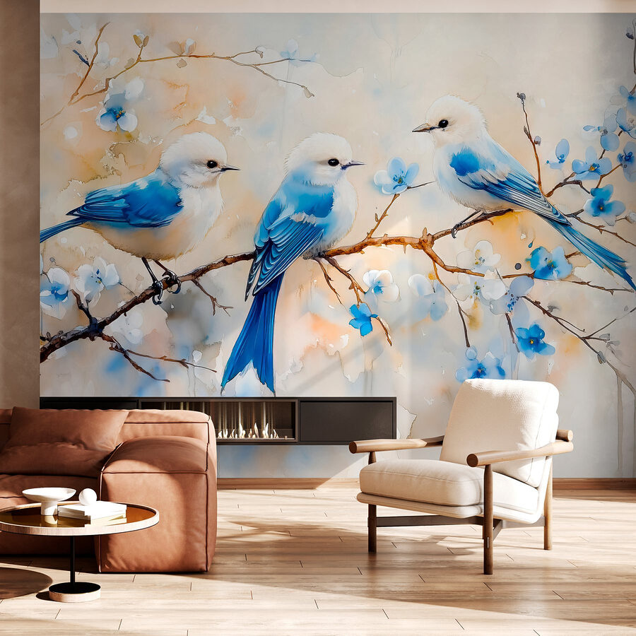 Verschönern Sie jeden Raum mit dieser bezaubernden Wandtapete, auf der ein entzückendes Trio blauer Vögel auf einem sanft blühenden Ast sitzt. Es ist, als würden Sie die Natur in Ihren Raum einladen, ohne dass Sie Gefahr laufen, morgens vom Vogelgezwitscher geweckt zu werden! Der Aquarelleffekt sorgt für eine verträumte Stimmung, die perfekt ist, um eine ruhige Atmosphäre zu schaffen. Stellen Sie sich vor, Sie trinken Tee oder Kaffee in einer gemütlichen Ecke, während Sie von diesen gefiederten Freunden mit ihrem Gesang unterhalten werden. Verwenden Sie es im Kinderzimmer, im Wohnzimmer oder sogar im Arbeitsbereich, um Ihre Kreativität anzuregen. Das Blau und die zarten Blüten vermitteln ein Frühlingsgefühl – zu jeder Jahreszeit, zu jeder Zeit. Wer würde bei diesen niedlichen kleinen Gesichtern nicht lächeln?