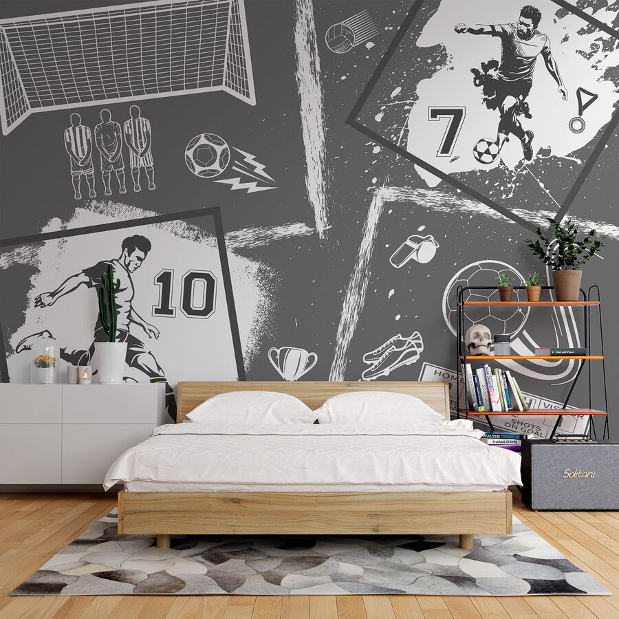 Bringen Sie mit dieser dynamischen Wandtapete, die die spannendsten Momente des Fußballs zeigt, Energie in jeden Raum! Sie ist perfekt für eingefleischte Fans und Gelegenheitszuschauer gleichermaßen und fängt die Spannung jedes Tritts und jedes Tores in einem stilvollen Grafikdesign ein. Stellen Sie sich vor, Sie laden Freunde zum großen Spiel ein – es geht nicht nur um das Spiel, sondern auch darum, die Atmosphäre zu genießen, und diese Wandtapete bringt diese Stimmung direkt an Ihre Wand.