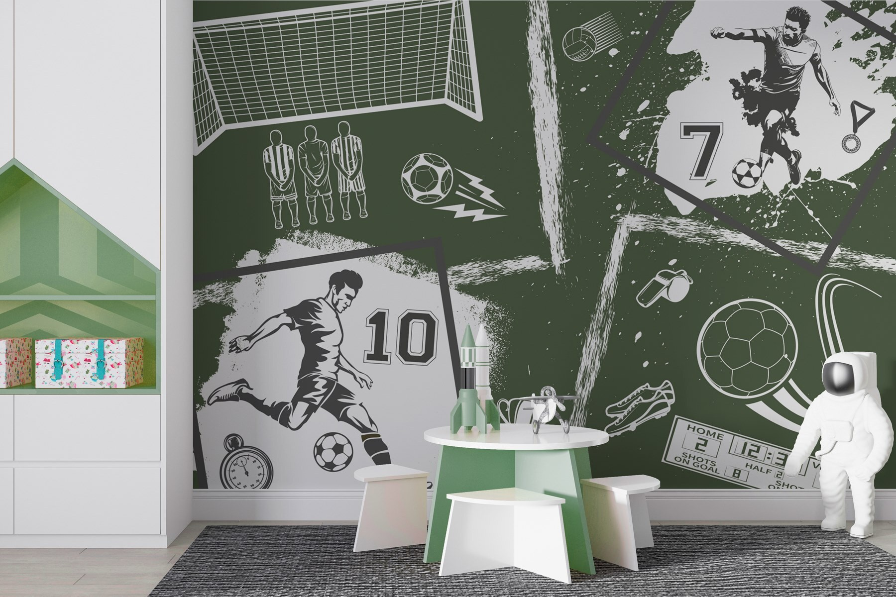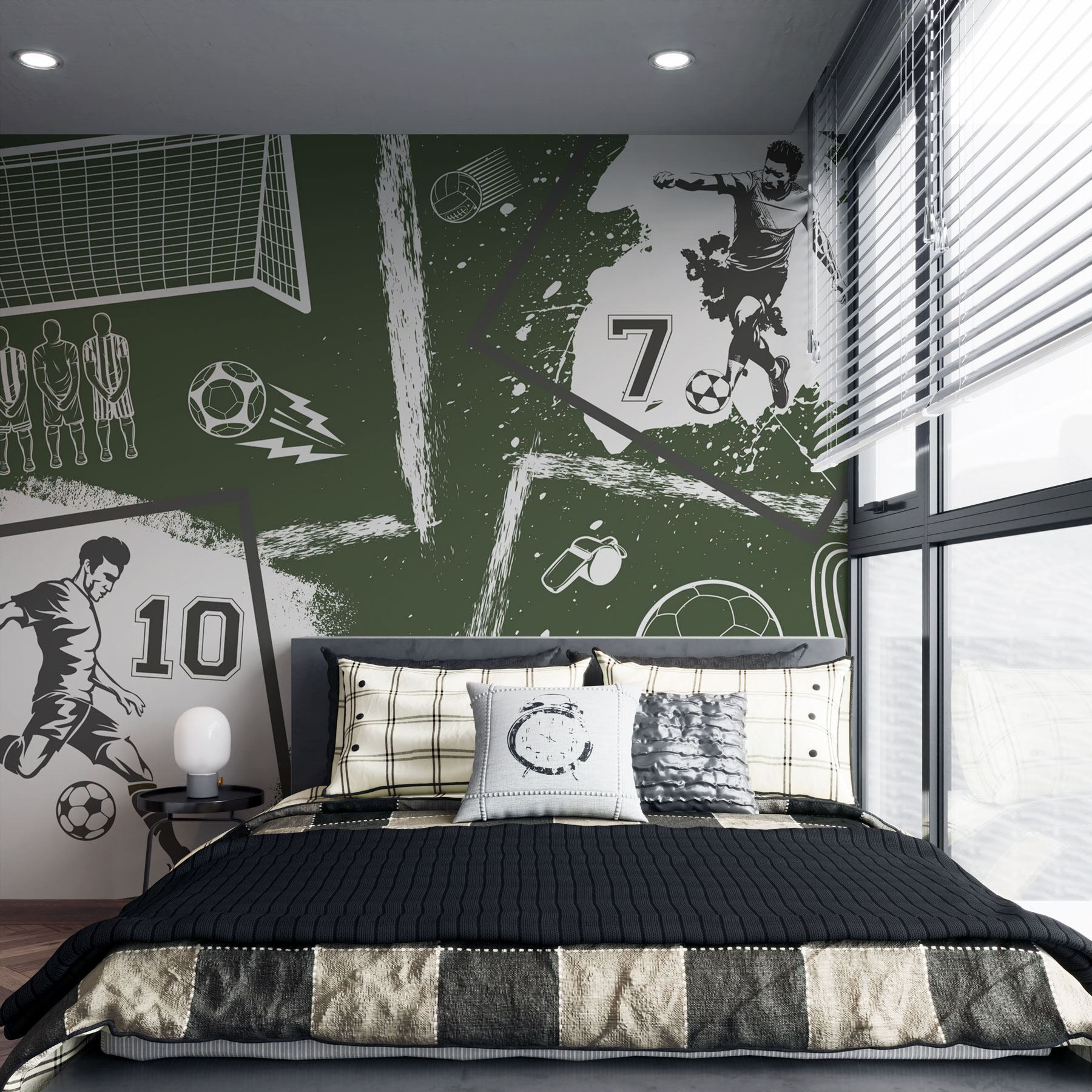 Verwandeln Sie Ihren Raum mit dieser lebendigen Wandtapete „Collage verschiedener Sportbilder“. Es ist, als hätten Sie die Spannung des Spiels direkt in Ihrem Wohnzimmer! Stellen Sie sich vor: Freunde versammelt, die Augen auf die Details des Fußballspiels, die Schuhe, die Trophäen und – oh, ist das die Pfeife des Schiedsrichters? Jedes Element erzählt eine Geschichte von Teamwork, Leidenschaft und diesen spannenden Momenten, in denen der Ball kurz davor ist, ins Netz zu gehen. Diese Tapete ist perfekt für Sportbegeisterte oder alle, die einen Schuss Energie schätzen, und sorgt für Spannung, ohne dass ein Schiedsrichter nötig ist. Verabschieden Sie sich von langweiligen Wänden – es ist Zeit, Ihre Einrichtung aufzupeppen!