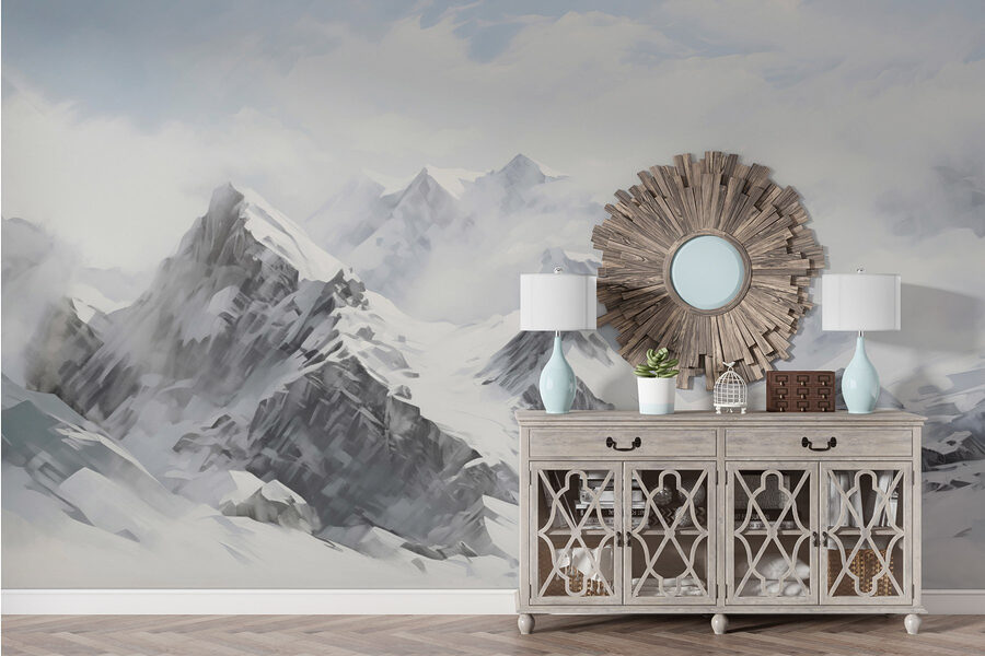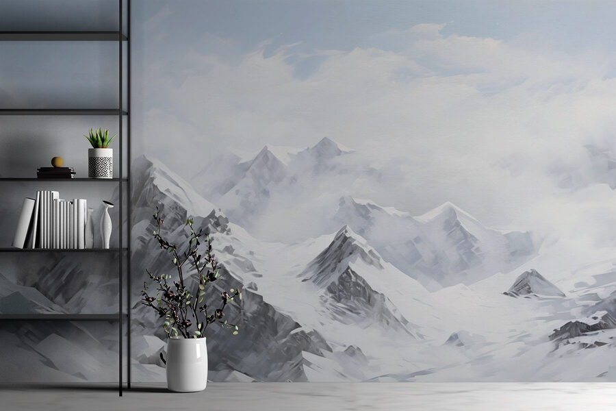 Verwandeln Sie Ihren Raum in ein Winterwunderland mit dieser atemberaubenden Wandtapete, auf der eine schneebedeckte Bergkette durch flauschige Wolken hindurchblitzt. Es ist, als hätten Sie ein Stück Natur direkt in Ihrem Wohnzimmer! Stellen Sie sich vor, Sie trinken gemütlich eine Tasse heißen Kakao und blicken dabei auf majestätische Gipfel, die Geschichten von Abenteuer und Gelassenheit zu erzählen scheinen. Diese Wandtapete ist perfekt für Tage, an denen ein Urlaub in weiter Ferne liegt, und bringt frischen Wind in Ihre vier Wände. Stellen Sie sich vor, wie Ihre Freunde vorbeikommen, große Augen machen und Sie fragen, ob Sie tatsächlich diese Berge bestiegen haben. Genau diese Stimmung vermittelt es!
