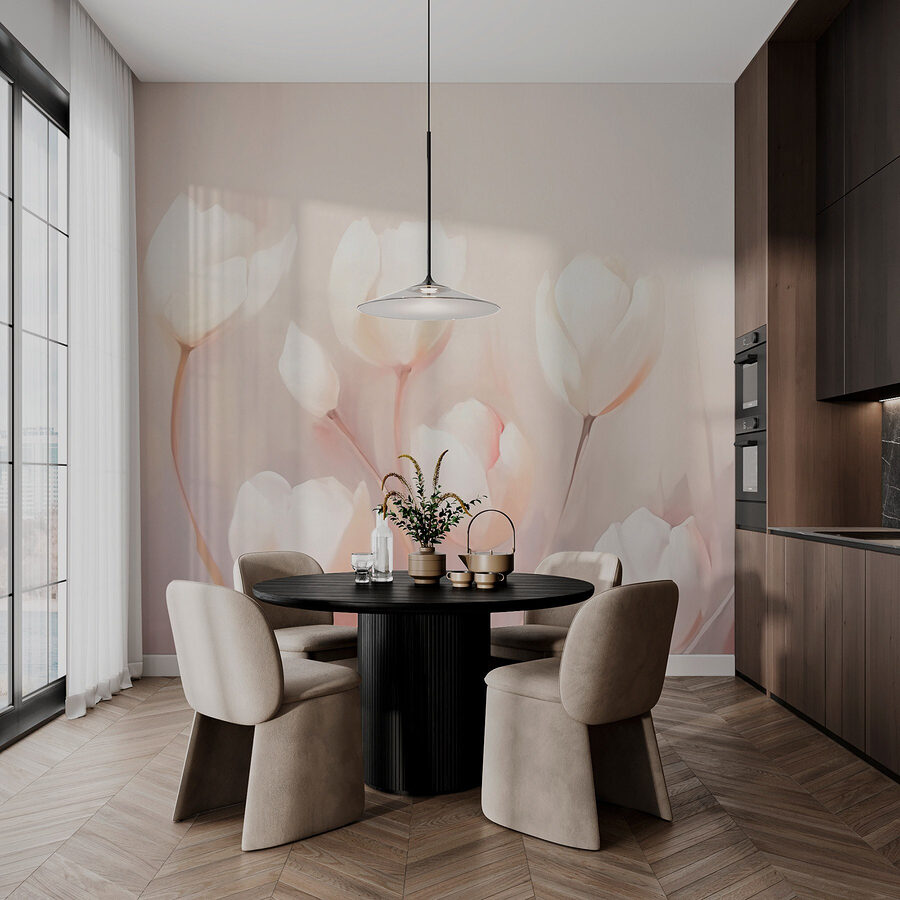 Treten Sie ein in eine Welt, in der sanfte Farbtöne zarter Blütenblätter Ihre Wände umhüllen und einen Hauch von Natur in Ihren Raum bringen. Diese Wandtapete „Zarte Blütenblätter in sanften Farbtönen“ hat eine traumhafte Ausstrahlung, die jeden Raum in einen ruhigen Gartenparadies verwandelt. Stellen Sie sich vor, Sie wachen auf und diese zarten weißen Blüten flüstern Ihnen Frieden und Ruhe zu – was für ein Start in den Tag! Freunde, die zu Besuch kommen, werden diese Schönheit sehen und sich fragen, ob sie in einen Blumenladen geraten sind. Es ist, als hätte man das ganze Jahr über ein Stück Frühling. Diese Tapete eignet sich perfekt für gemütliche Ecken oder offene Räume und strahlt Eleganz mit genau der richtigen Portion Charme aus. Lassen Sie Ihre Wände erblühen!
