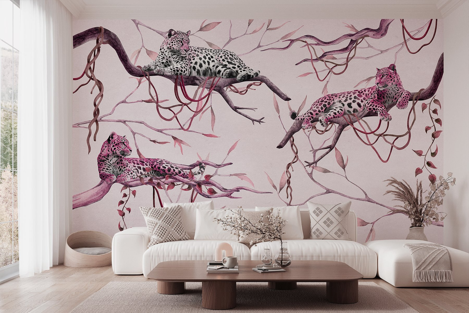 Verwandeln Sie Ihren Raum in einen wilden Rückzugsort mit dieser atemberaubenden Wandtapete, auf der eine charmante Gruppe von Leoparden zu sehen ist, die auf einem Ast faulenzen. Diese gefleckten Schönheiten wissen ganz genau, wie man sich entspannt, und sie verbreiten eine lockere Atmosphäre, die jeden Raum aufhellen kann. Stellen Sie sich vor, Sie wachen jeden Morgen mit diesem Anblick auf – lehnen Sie sich mit Ihrer Tasse Kaffee zurück und spüren Sie, wie die Ruhe Sie überkommt. Die sanften Farben und die filigranen Details vermitteln das Gefühl, als hätten Sie ein Stück Tropen direkt bei sich zu Hause. Perfekt für Tierliebhaber oder alle, die sich einfach nur ein einzigartiges Statement-Stück wünschen. Also, legen Sie los – lassen Sie diese Leoparden ein bisschen Wildnis in Ihr Zuhause bringen!