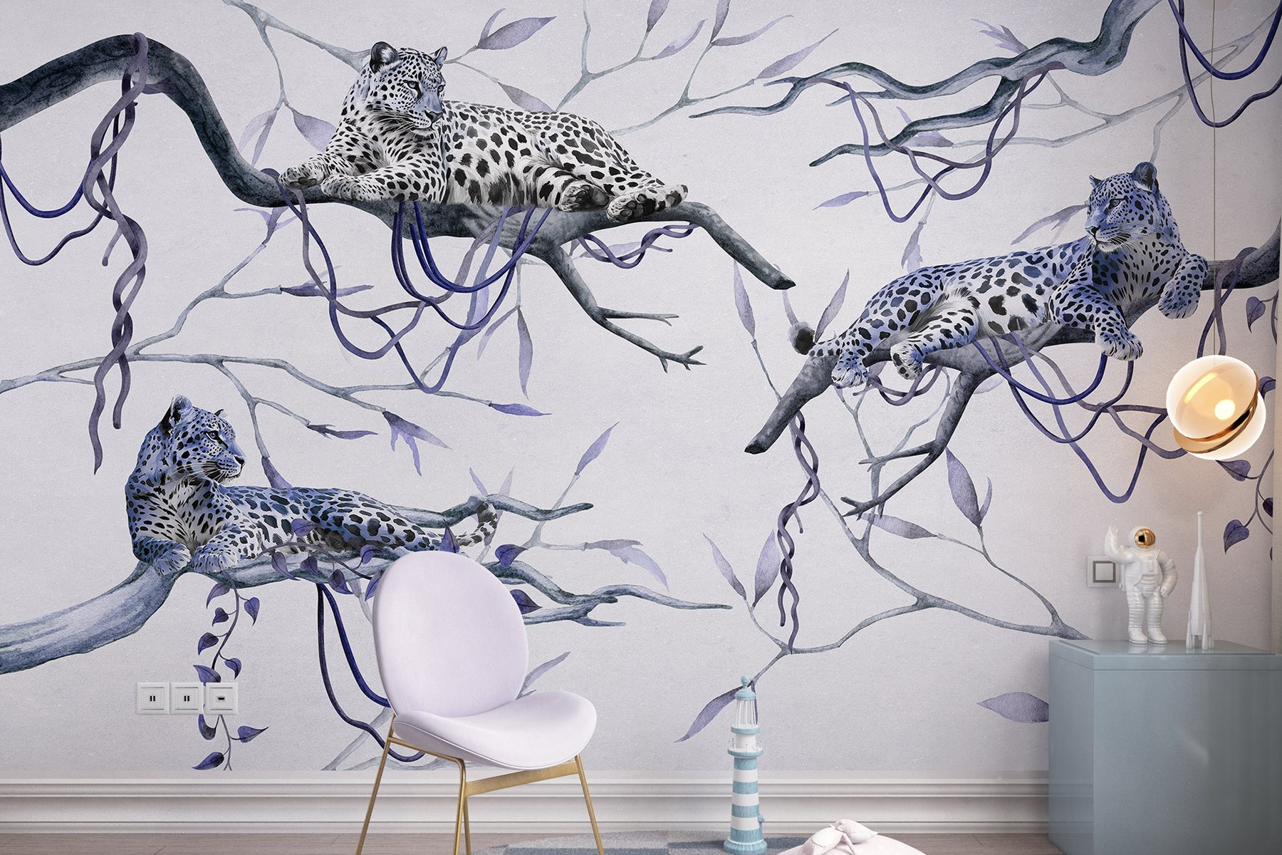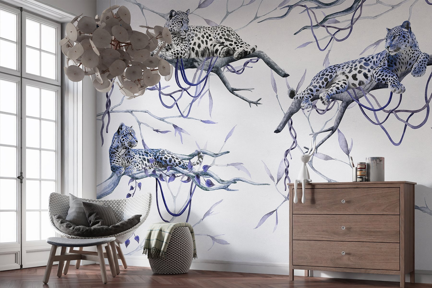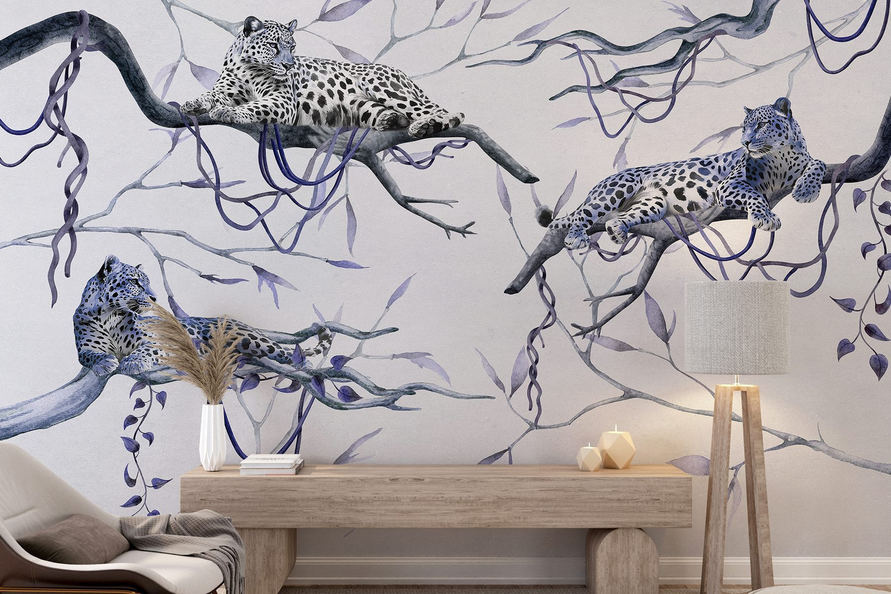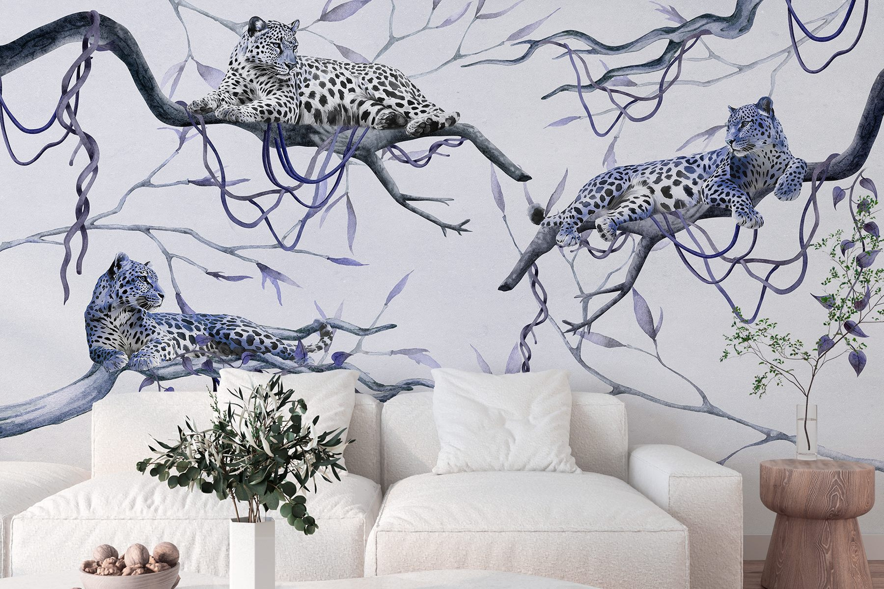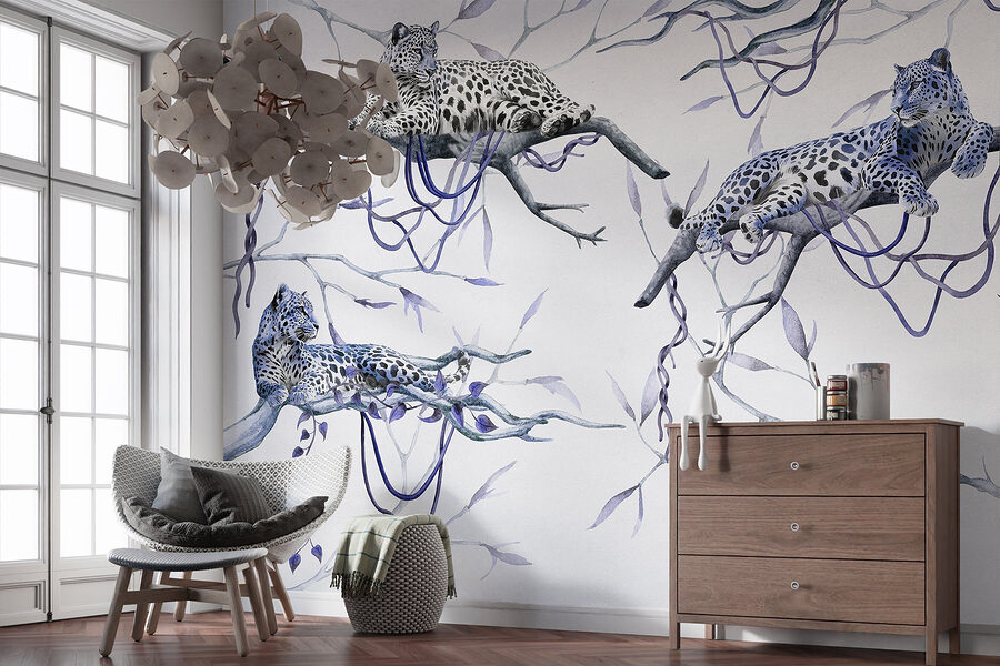 Verwandeln Sie Ihren Raum in ein Dschungelparadies mit dieser faszinierenden Wandtapete, auf der Leoparden auf Ästen faulenzen. Stellen Sie sich vor, Sie wachen auf und fühlen sich wie in einem ruhigen Wald. Diese majestätischen Raubkatzen mit ihren auffälligen Flecken und ihrer ruhigen Ausstrahlung verleihen dem Raum eine ganz besondere Atmosphäre. Diese Wandtapete eignet sich perfekt für Ihr Wohnzimmer oder eine gemütliche Ecke und ist nicht nur Dekoration, sondern bringt ein Stück Natur direkt zu Ihnen nach Hause. Die sanften Farben und die detailreichen Motive laden zum Träumen von tropischen Abenteuern ein und sorgen gleichzeitig für Entspannung. Hier trifft Wildnis auf Gemütlichkeit – wer würde das nicht wollen?
