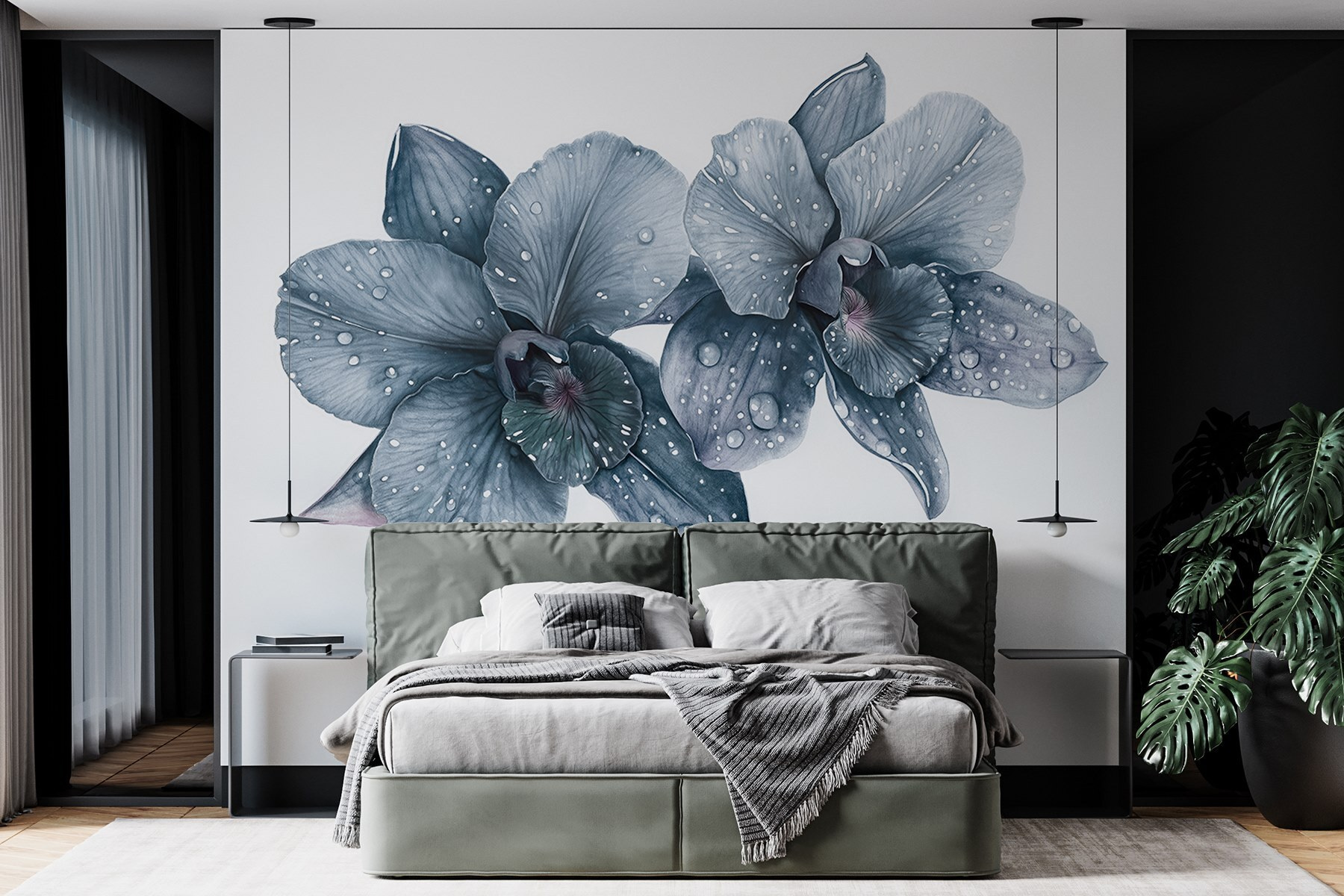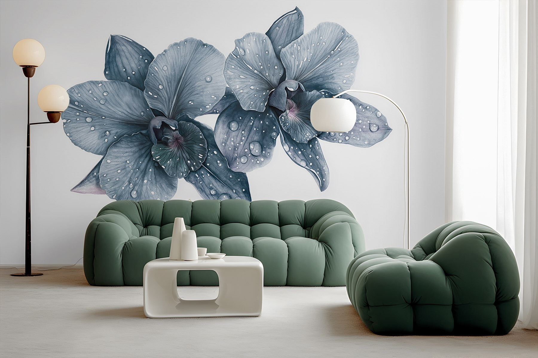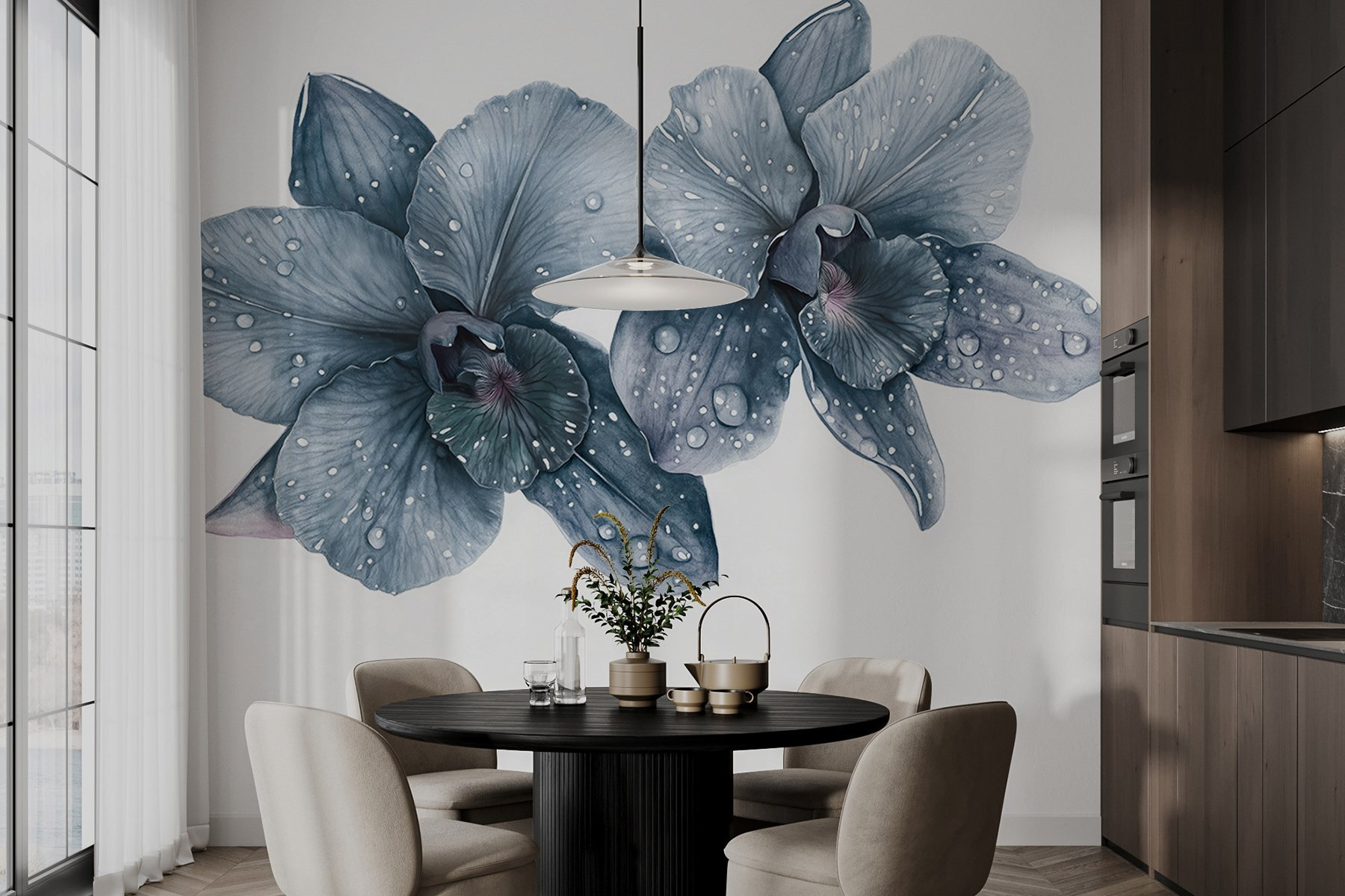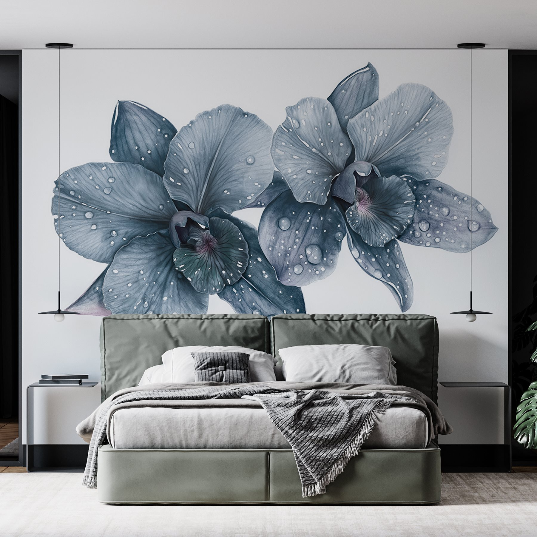 Verwandeln Sie Ihren Raum mit der Wandtapete „Zarte Orchideen mit Morgentau“. Stellen Sie sich vor, Sie wachen auf und genießen die sanfte Schönheit dieser eleganten Blumen, deren Blütenblätter von frischen Morgentropfen geküsst werden. Es ist, als würde man einen ruhigen Garten ins Haus holen, nur ohne Pollenallergien – Gott sei Dank! Die sanften Grautöne strahlen Ruhe aus und eignen sich perfekt für eine gemütliche Leseecke oder ein schickes Wohnzimmer. Stellen Sie sich vor: Ein Freund kommt zu Besuch, sieht das Wandbild und plötzlich unterhalten Sie sich beide über die Geheimnisse der Orchideenpflege – oder wie man sie ganz vermeiden kann! Der Charme dieses Wandbildes liegt in seiner Schlichtheit – es fängt die Anmut der Natur mit genau dem richtigen Maß an Raffinesse ein. Lassen Sie diese Schönheiten Wärme und Gespräche in jeder Ecke Ihres Zuhauses inspirieren!