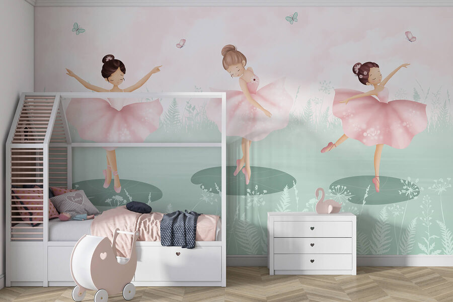 Verwandeln Sie Ihren Raum mit dieser bezaubernden Fototapete, die eine entzückende Gruppe von Mädchen zeigt, die auf einer sonnenbeschienenen Wiese tanzen. Es ist wie eine Szene direkt aus einem wunderlichen Tagtraum, wo Lachen die Luft erfüllt und Schmetterlinge herumflattern. Stellen Sie sich vor, wie die kleinen Füße in den weichen rosa Tutus herumwirbeln und ein Gefühl von Freude und Unbeschwertheit hervorrufen. Dieses Wandbild eignet sich perfekt für das Kinderzimmer und regt Kreativität und Fantasie an. Stellen Sie sich das Lächeln und die Geschichten vor, die sich hier abspielen, wenn die kleinen Tänzer ihre eigenen Abenteuer voller Spaß und Freundschaft erleben. Ein Hauch von Glück für jede Wand!