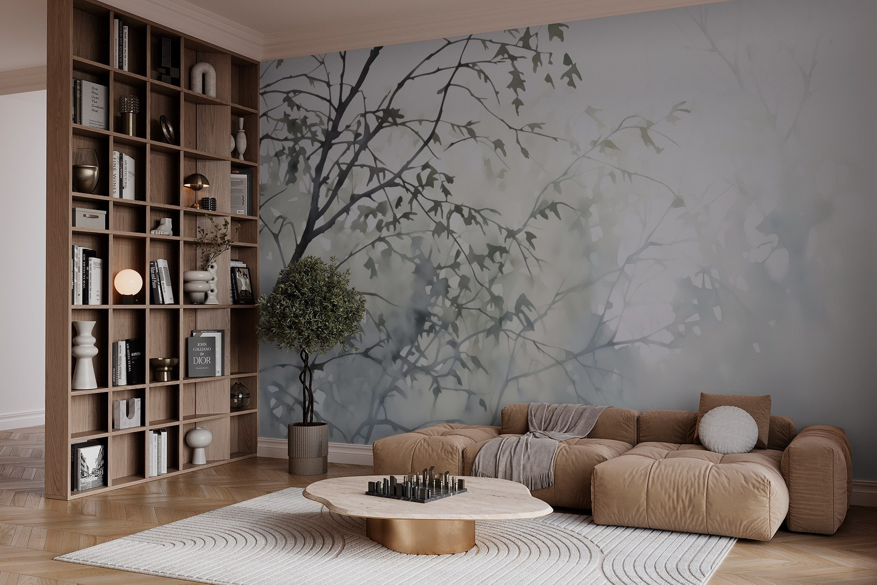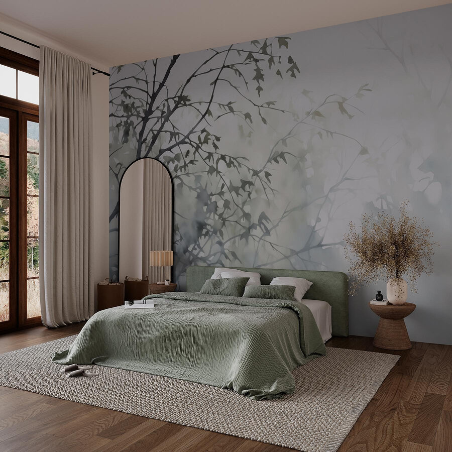 Verwandeln Sie Ihren Raum in eine Oase der Ruhe mit der Wandtapete „Baum mit Blättern im Nebel“. Diese Tapete bringt die Ruhe eines nebligen Waldes direkt in Ihr Zuhause. Stellen Sie sich vor, Sie trinken Ihren Morgenkaffee, eingehüllt in eine kuschelige Decke, während sanfte, blättrige Silhouetten über Ihre Wände tanzen – eine Erinnerung an die Ruhe der Natur. Es ist, als würden Sie nach draußen treten, ohne jemals Ihren Sessel zu verlassen! Diese Wandtapete eignet sich perfekt für Ihr Wohn- oder Schlafzimmer und strahlt Ruhe und Entspannung aus, was sie zu einem idealen Hintergrund für kühle Abende macht. Wer wünscht sich nicht ein wenig neblige Magie, gemischt mit der Schönheit der Natur? Lassen Sie sich vom einzigartigen Charme dieser Wandtapete verzaubern und beobachten Sie, wie Ihr Raum zum Leben erwacht.
