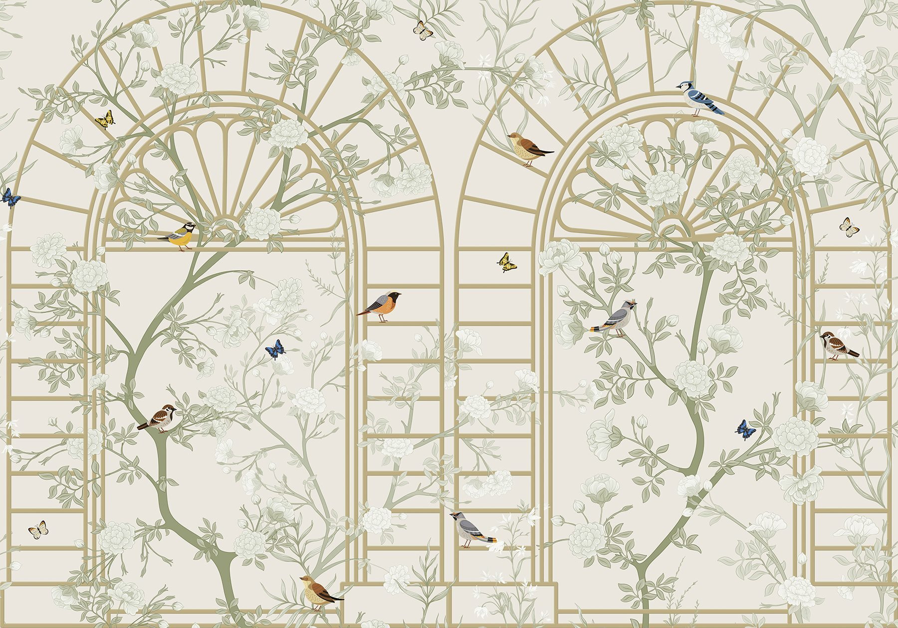 Fototapeten Tapete mit einer Leiter und Vögeln (Artikelnummer: w03190)