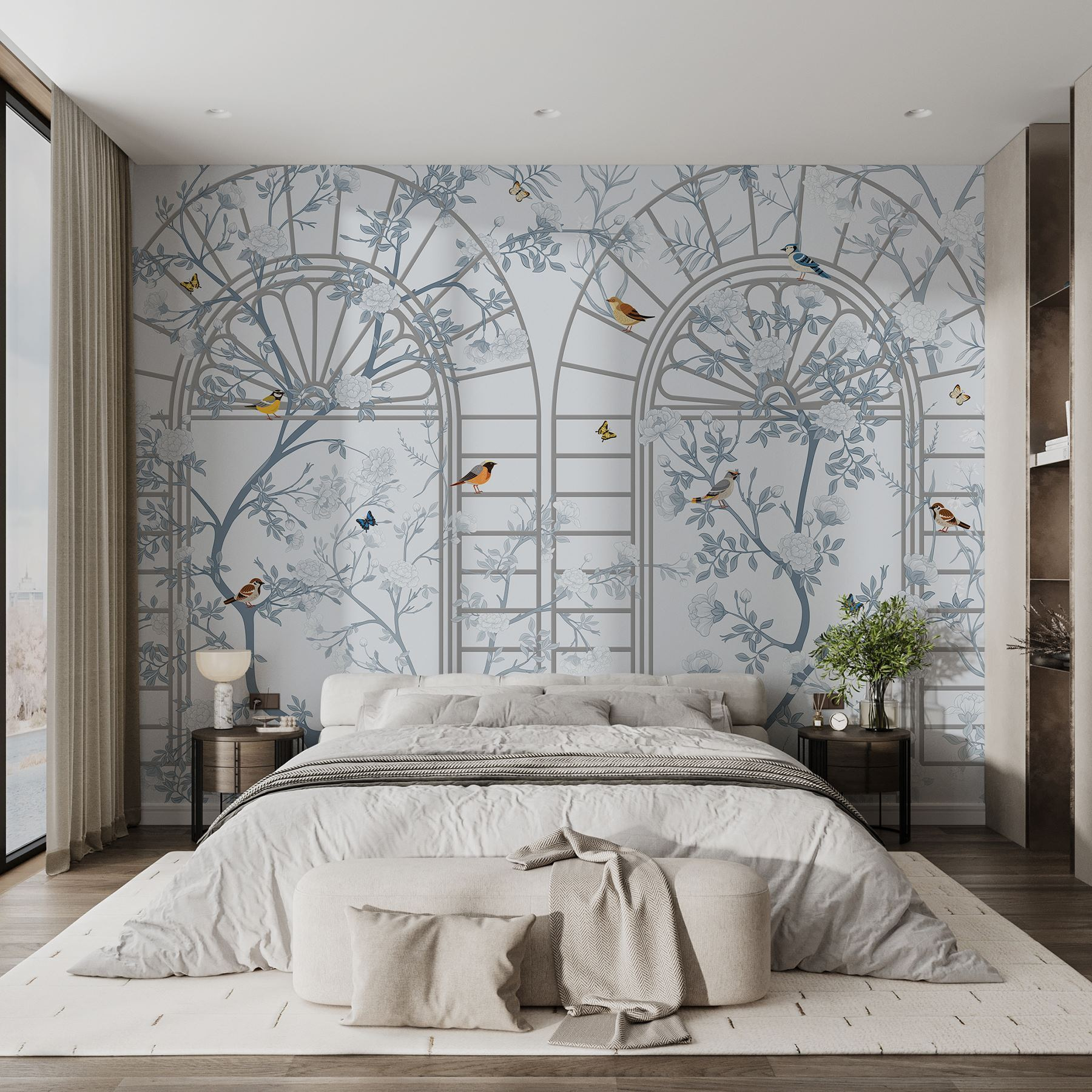 Verwandeln Sie Ihren Raum mit dieser atemberaubenden Wandtapete, die eine traumhafte Mischung aus Vögeln und Blüten zeigt. Stellen Sie sich die Ruhe vor, die sie vermittelt, fast wie ein wohltuender Hauch frischer Luft, der Ihnen zuflüstert: „Hey, entspann dich ein bisschen!“ Die zarte Leiter und das filigrane Blumenmuster schaffen eine leichte, luftige Atmosphäre, die sich anfühlt, als würde man einen ruhigen Garten betreten – selbst wenn das Einzige, was in Ihrem Zuhause wächst, die alte Pflanze auf der Fensterbank ist. Und diese Vögel? Sie sehen aus, als würden sie sich unterhalten wollen, als würden sie nur für Sie die schönsten Melodien singen. Diese Tapete eignet sich perfekt für eine gemütliche Leseecke oder einen einladenden Eingangsbereich und verleiht Ihrem Zuhause eine persönliche Note, die sagt: „Das Leben ist ein bisschen skurril, und das ist gut so!“ Wer würde das nicht wollen?