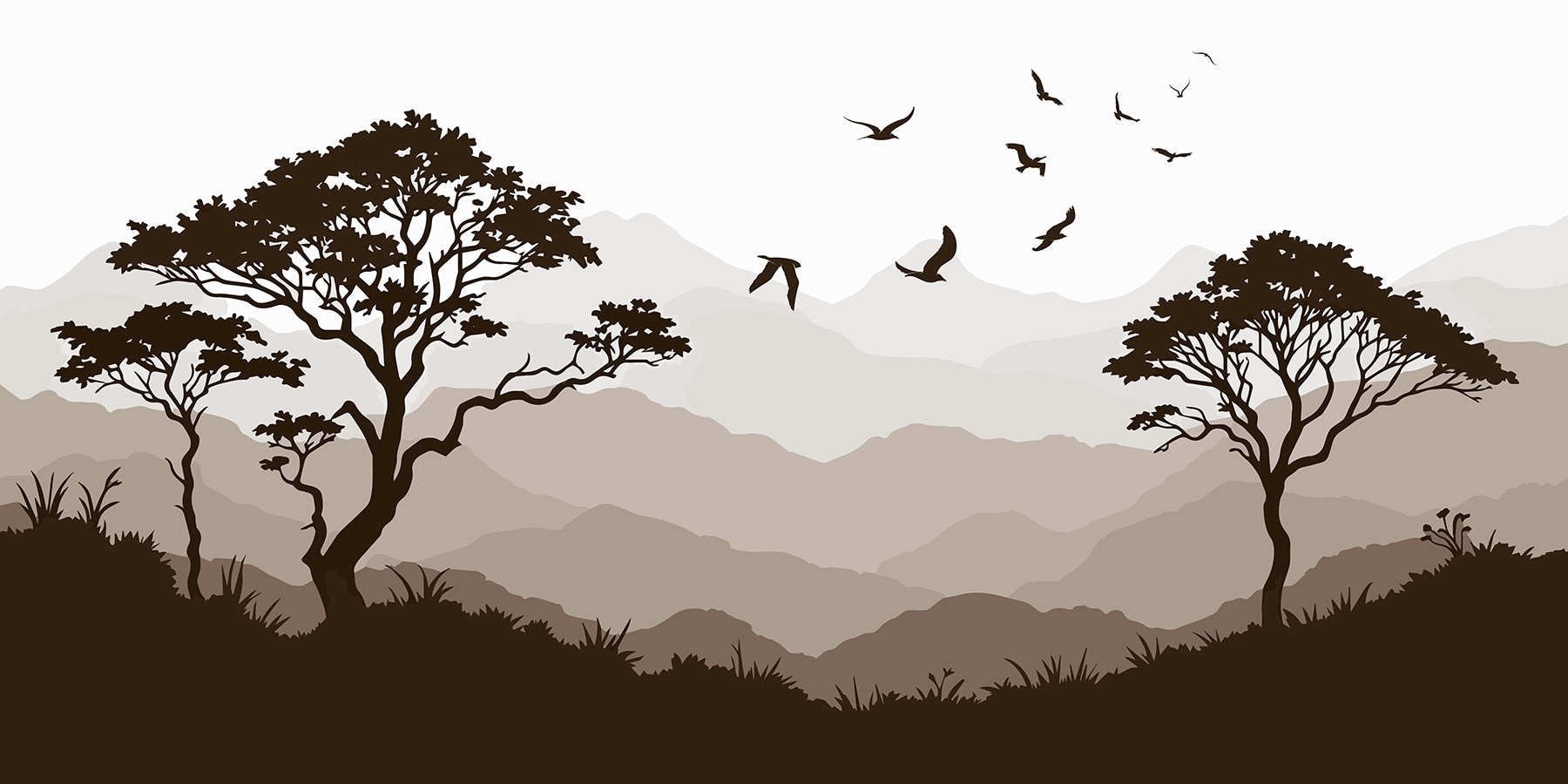 Verwandeln Sie jeden Raum mit diesem atemberaubenden Wandbild von Vögeln, die über eine ruhige Bergkette fliegen. Es ist, als würden Sie ein Stück Natur direkt in Ihr Zimmer holen – stellen Sie sich vor, Sie wachen jeden Morgen in dieser friedlichen Atmosphäre auf. Die sanften Braun- und Erdtöne schaffen eine gemütliche Atmosphäre, perfekt für entspannte Tage oder lebhafte Zusammenkünfte. Stellen Sie sich vor: Freunde bewundern das Kunstwerk, Geschichten werden erzählt, während das Wandbild still seinen Charme versprüht. Und dann diese Vögel! Sie sorgen für eine Prise Fantasie und erinnern Sie daran, dass das Abenteuer immer direkt über Ihnen wartet. Es ist mehr als nur Dekoration, es ist eine sanfte Flucht aus dem Alltag!
