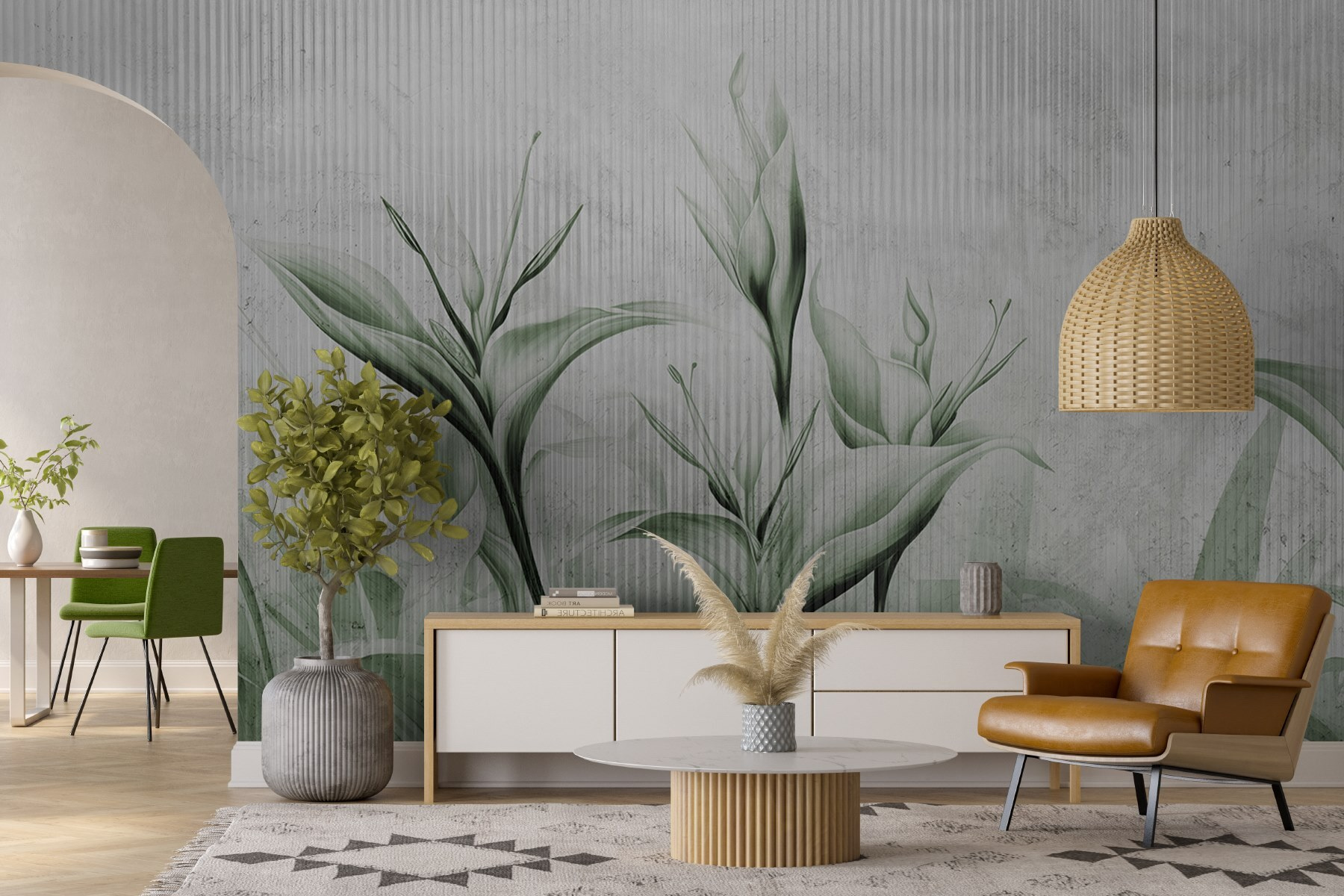 Verwandeln Sie jeden Raum mit der bezaubernden Wandtapete „Whispers of Nature’s Gentle Touch” (Flüstern der sanften Berührung der Natur). Stellen Sie sich vor, Sie wachen auf und werden von sanft wiegenden, ruhigen Grüntönen und subtilen Texturen umgeben, wie von einer sanften Brise, die Ihr Gesicht streichelt. Dieses Meisterwerk ist nicht nur Kunst, sondern eine Einladung, tief durchzuatmen und sich zu entspannen. Stellen Sie sich diese Tapete in einem gemütlichen Wohnzimmer oder einem ruhigen Schlafzimmer vor – jeder Blick darauf fühlt sich wie ein Kurzurlaub an. Sie flüstert Geschichten aus der Natur und ruft ein Gefühl der Ruhe hervor. Ihre Wände sehen nicht nur gut aus, sie strahlen auch Frieden aus und verwandeln Ihr Zuhause in eine Oase der Ruhe! Stellen Sie sich vor, wie schön es wäre, einen Kaffee zu trinken und dabei diese üppige Szenerie zu betrachten – ein kleines Stück Paradies, direkt bei Ihnen zu Hause.