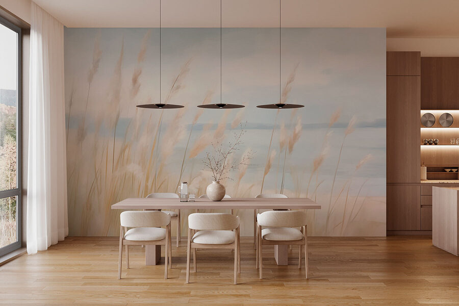 Verwandeln Sie jeden Raum mit dieser wunderschönen Wandtapete, auf der hohe Gräser sanft an einem ruhigen Gewässer im Wind wiegen. Stellen Sie sich vor: ein gemütlicher Raum, in den das Morgenlicht hereinströmt, und diese Tapete vermittelt ein Gefühl der Ruhe. Es ist, als würde man einen Spaziergang durch die Natur machen, ohne das Haus zu verlassen – perfekt für alle, die ein wenig Grün lieben, ohne sich darum kümmern zu müssen! Die sanften Farben schaffen eine beruhigende Atmosphäre und machen die Tapete zum idealen Hintergrund für ruhiges Lesen oder einen Kaffee mit Freunden. Mal ehrlich, wer würde sich bei einer so schönen Aussicht nicht entspannter fühlen? Es ist nicht nur Dekoration, es ist ein kleines Stück Natur direkt bei Ihnen zu Hause!