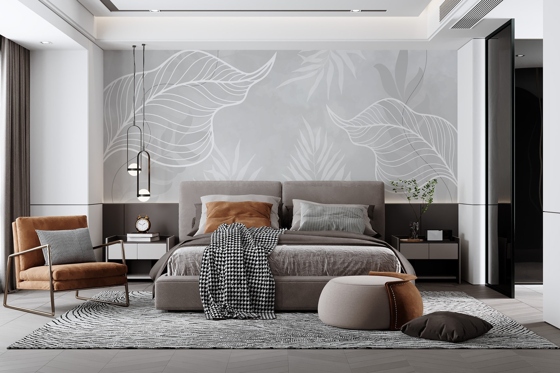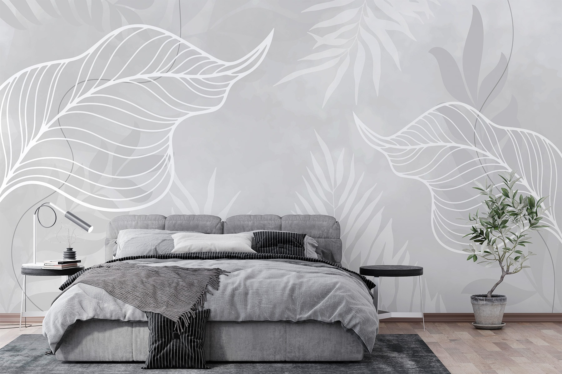 Dieses Wandbild mit zarten weißen Blättern auf einem sanften grauen Hintergrund verleiht jedem Raum einen ganz besonderen Charme. Stellen Sie sich vor, Sie betreten einen gemütlichen Raum, in dem die Silhouetten der Blätter leicht vor der Wand tanzen und eine frische, luftige Atmosphäre schaffen. Es ist, als ob man sich die Natur ins Haus holt – perfekt für faule Nachmittage, an denen man Kaffee trinkt oder Freunde empfängt. Das subtile Farbschema passt zu den meisten Einrichtungsstilen und ist daher vielseitig einsetzbar. Ganz gleich, ob Sie eine ruhige Atmosphäre oder einen Hauch von Eleganz anstreben, dieses Wandbild verleiht ein einzigartiges Flair. Vielleicht ertappen Sie sich sogar dabei, wie Sie tagträumen und darüber nachdenken, wohin diese skurrilen Blätter wohl wandern werden.