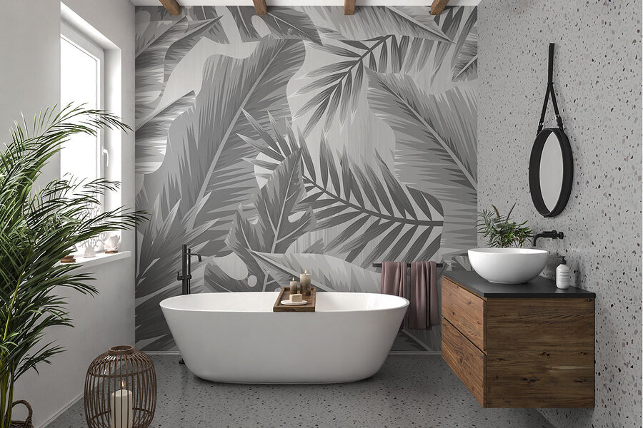 Verwandeln Sie jeden Raum mit dieser atemberaubenden grau-weißen Wandtapete, die ein grünes Paradies zeigt, das sowohl Ruhe als auch Lebendigkeit ausstrahlt. Stellen Sie sich vor, Sie betreten einen Raum, in dem die Blätter Geschichten von tropischen Abenteuern zu flüstern scheinen – nicht zu laut, aber gerade genug, um Tagträume zu wecken. Die subtilen Farbtöne fügen sich nahtlos zusammen und verleihen dem Raum Tiefe, ohne die Sinne zu überwältigen. Perfekt für gemütliche Leseecken oder lebhafte Treffpunkte, bringt es einen Hauch von Natur ins Haus. Und wer braucht schon einen Urlaub in den Tropen, wenn man sich zu Hause seine eigene Oase der Ruhe schaffen kann? Es ist wie ein Hauch frischer Luft, direkt an Ihren Wänden.