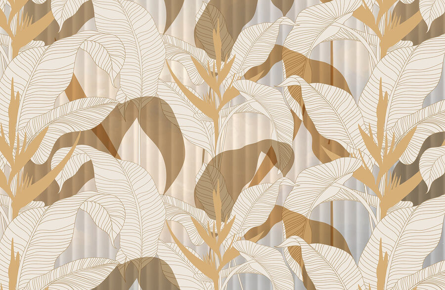 Fototapeten Tapete mit Blättern und Blumen (Artikelnummer: w03254)