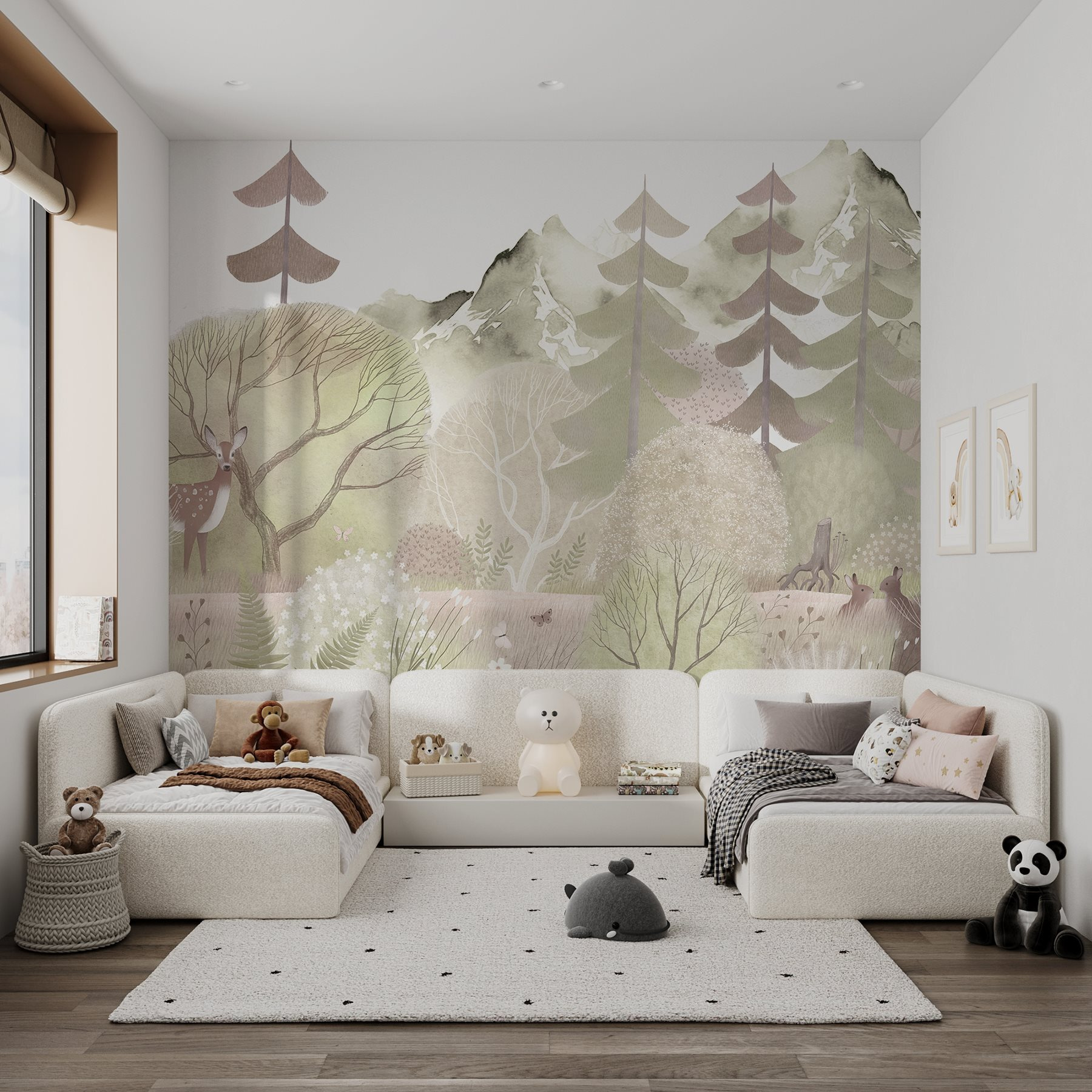 Verwandeln Sie jeden Raum in einen ruhigen Rückzugsort im Wald mit dieser bezaubernden Wandtapete „Deer in a Forest” (Hirsch im Wald). Stellen Sie sich vor, Sie betreten einen friedlichen Wald, in dem die sanfte Präsenz von Hirschen und gedämpfte Farben eine warme Umarmung schaffen. Jeder Blick auf diese Wandtapete lädt zum Entspannen ein und macht sie perfekt für ein gemütliches Wohnzimmer oder ein traumhaftes Schlafzimmer. Ob Sie nun Kaffee trinken, tagträumen oder sogar lesen, diese Wandtapete strahlt Ruhe aus. Es ist die Natur, kunstvoll eingefangen, die die Außenwelt direkt in Ihr Zuhause bringt. Also los, lassen Sie Ihre Wände eine Geschichte erzählen!