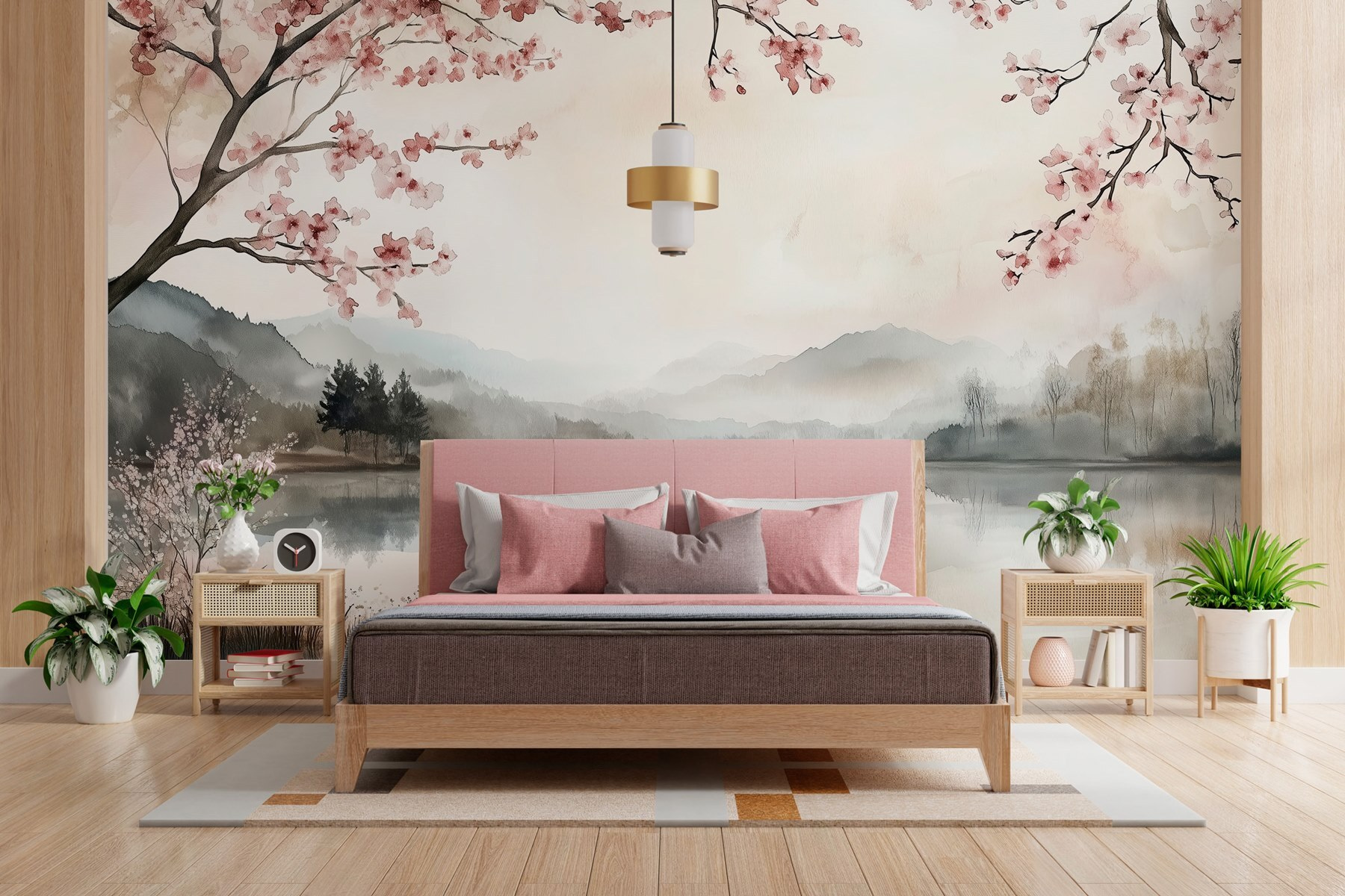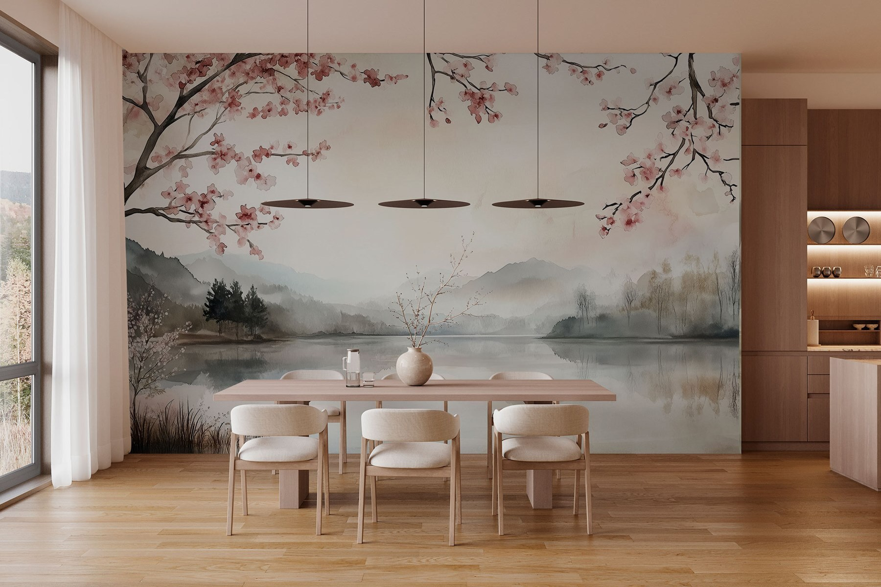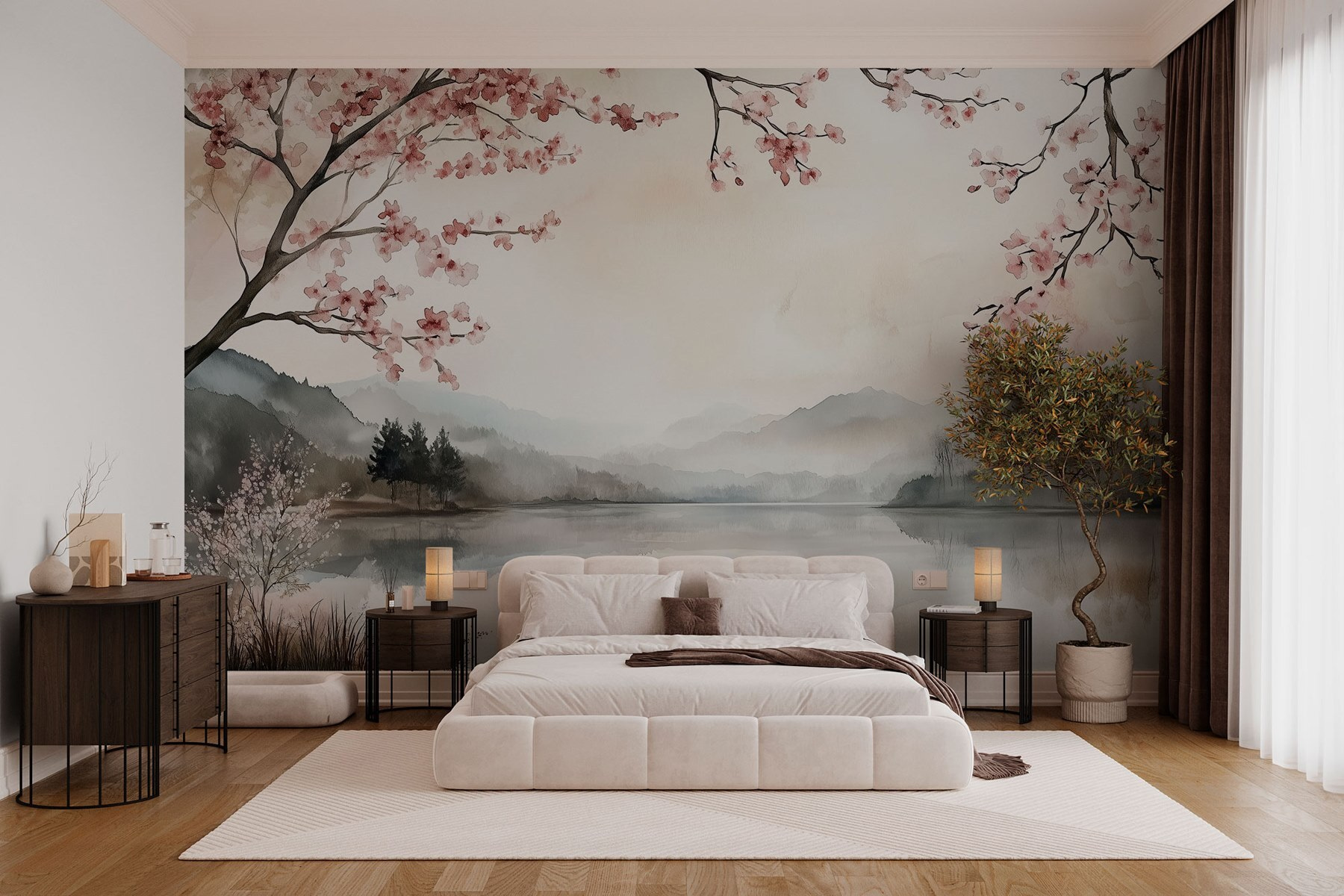Verwandeln Sie Ihren Raum in einen ruhigen Zufluchtsort mit dieser atemberaubenden Aquarellwandmalerei eines Sees, der von sanften, nebligen Bergen und zarten Bäumen umgeben ist. Stellen Sie sich vor, Sie betreten Ihr Zimmer und haben das Gefühl, Sie könnten an diesem ruhigen Wasser entlang spazieren, vielleicht sogar einen Kieselstein werfen und die Wellen tanzen sehen. Die sanften Farbtöne sorgen für Ruhe und Ausgeglichenheit und machen das Zimmer zu einem gemütlichen Ort, an dem man sich entspannen oder mit Freunden treffen kann. Es ist wie eine Umarmung der Natur, direkt an der Wand, die zum Tagträumen und Durchatmen einlädt. Wer möchte das nicht?✨ Egal, ob Sie sich für einen rustikalen Rückzugsort oder einen modernen Twist entscheiden, diese Fototapete fügt alles mühelos zusammen.
