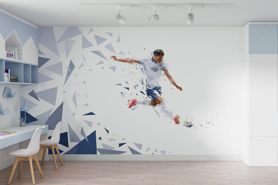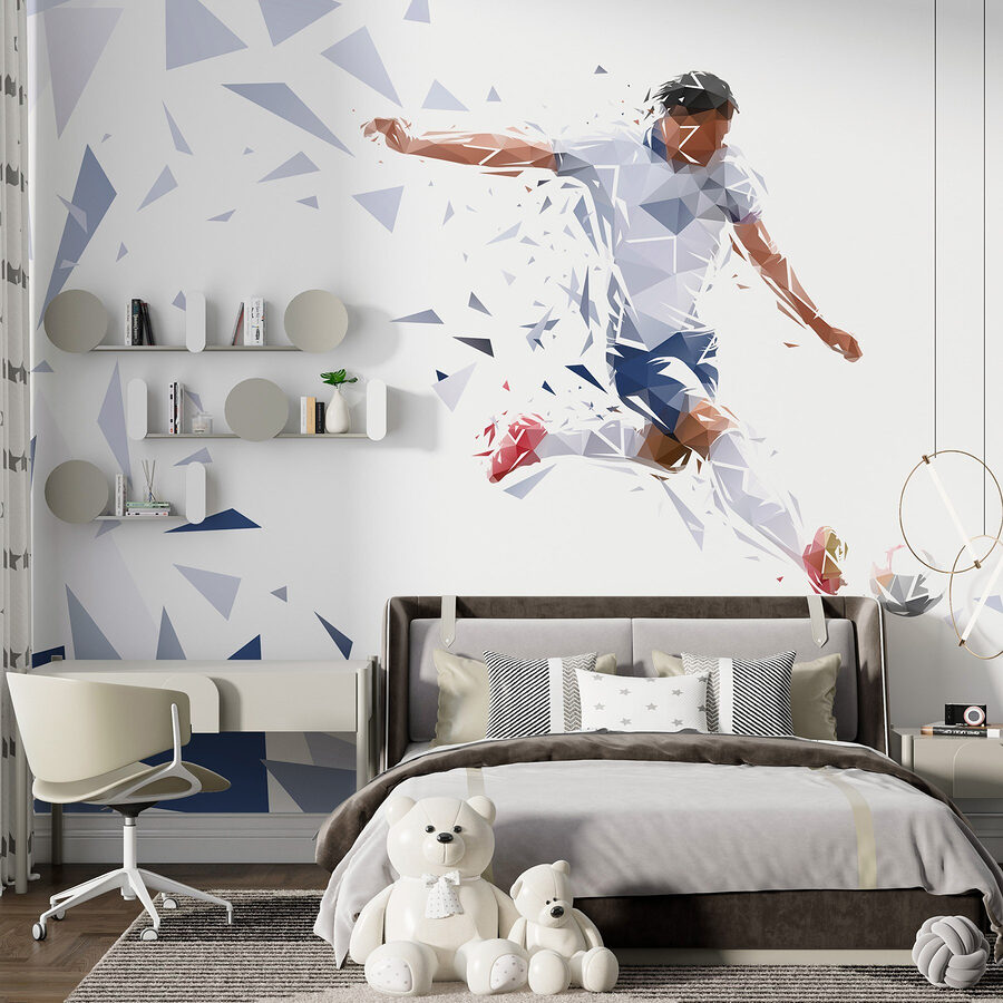 Verwandeln Sie eine schlichte Wand in eine lebendige Fußballszene mit dieser dynamischen Fototapete, die einen Spieler zeigt, der einen Fußball kickt. Es ist, als hätten Sie ein Mini-Stadion in Ihrem Wohnzimmer, wo sich jeder Blick wie ein Spieltag anfühlt. Die kühnen, kantigen Designs bringen Energie in jeden Raum – perfekt für die Ecke, in der Sie ein wenig Aufregung brauchen. Stellen Sie sich vor, wie Kinder vorbeilaufen und so tun, als würden sie das Siegestor schießen, oder wie Freunde bei einem Snack plaudern und dabei die Kunstwerke bewundern. Dieses Wandbild dekoriert nicht nur, es inspiriert auch. Es ist eine unterhaltsame Art, den Sport zu feiern und überall ein Lächeln und ein Gefühl von Teamwork zu erzeugen. Wer möchte nicht jeden Tag an diesen Nervenkitzel erinnert werden?