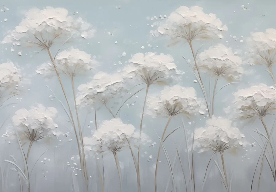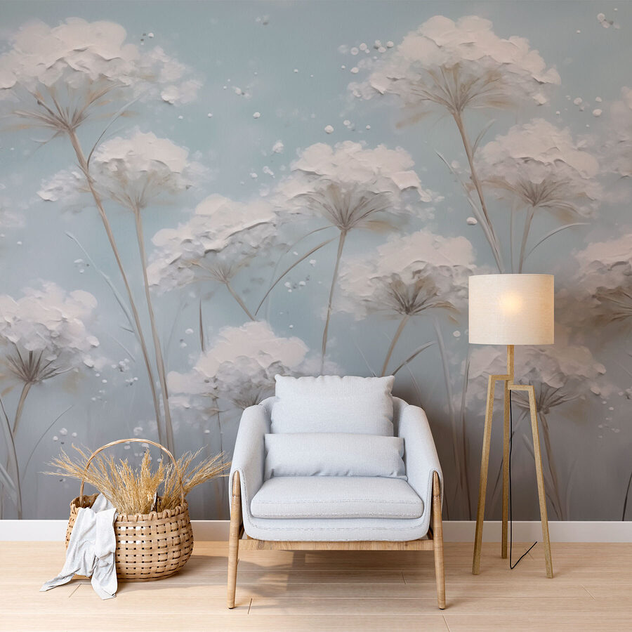 Verwandeln Sie jede Wand mit dieser bezaubernden Fototapete, die Blumenfelder in Ihr Zuhause bringt. Stellen Sie sich einen ruhigen blauen Hintergrund vor, der mit zarten Blüten übersät ist, die sich sanft in einer leichten Brise wiegen. Es ist, als würde man in einen Tagtraum eintauchen oder einen frischen Frühlingsmorgen einatmen. Diese Fototapete strahlt Wärme und Ruhe aus und eignet sich daher sowohl für gemütliche Leseecken als auch für lebhafte Wohnräume. Stellen Sie sich vor, wie Sie in einem Raum, der sich wie eine Umarmung der Natur anfühlt, Tee trinken oder gemeinsam lachen – weich, einladend und unendlich fröhlich. Perfekt für alle, die einen Hauch von Laune und Eleganz lieben!